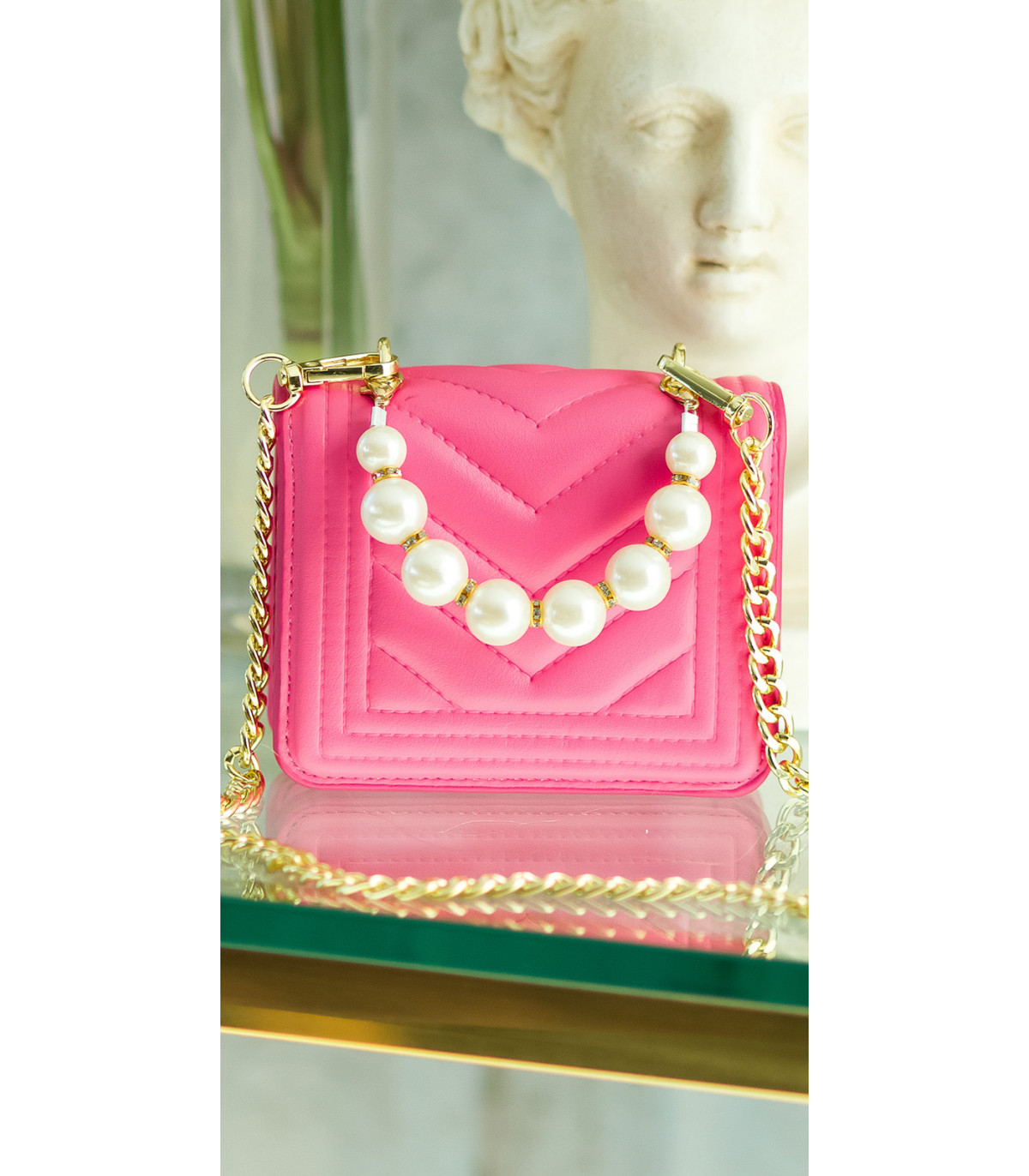 Pink mini handbag with beaded handle