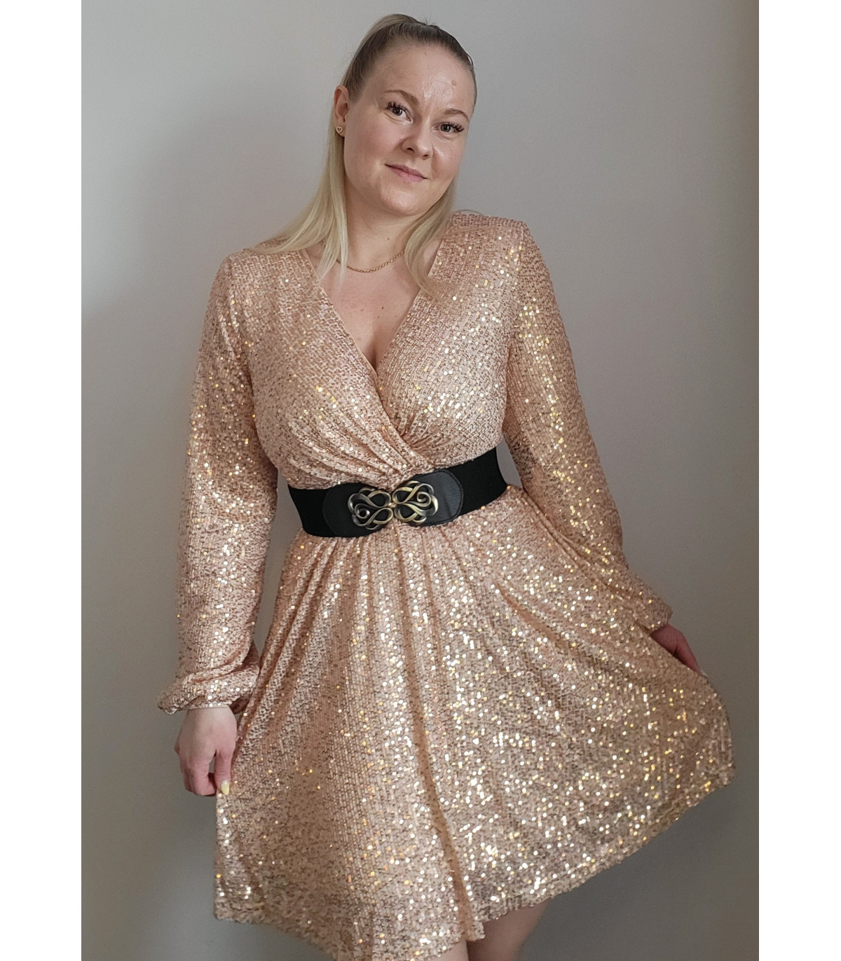 Black decorative waist belt.