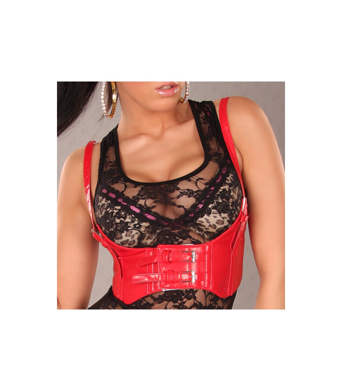 Red faux leather belt with straps