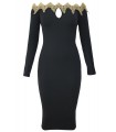 Black Gold Embroidered Off-Shoulder Mid dress [LAST CHANCE]