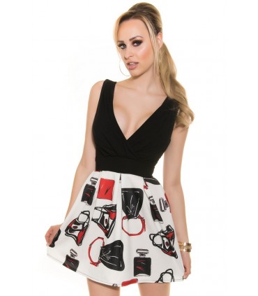 Black print pattern v-skater mini dress [LAST CHANCE]