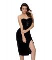 Black strapless nodder-breasted velvet dress with slit [LAST CHANCE]