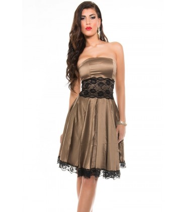 Cappuccino strapless lace-ornamented party dress. Only available in this batch - we will not get any more product!
