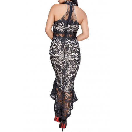 Lace-orned mermaid bead high low party dress [LAST CHANCE]