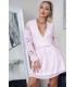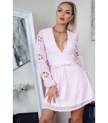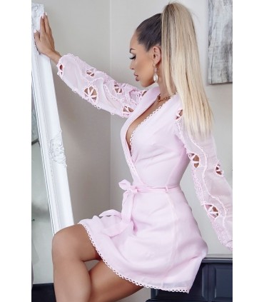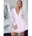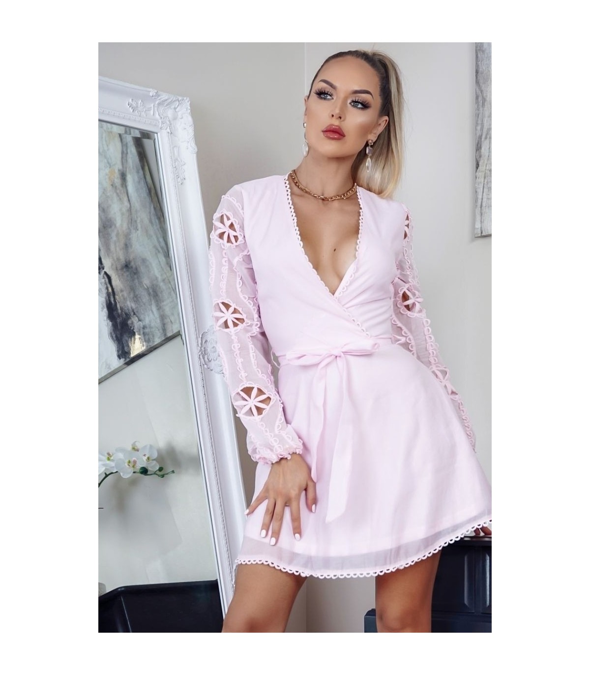 Parisian pink decorative sleeve v-wrap-look dress [LAST CHANCE]