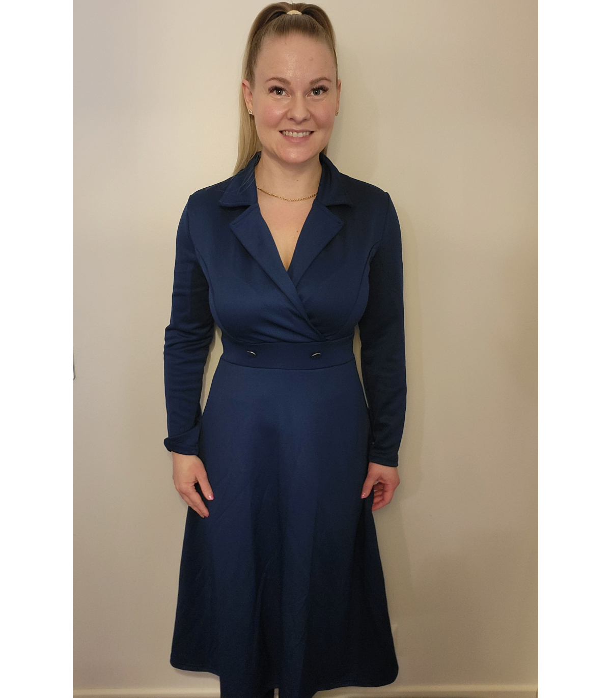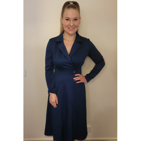 Stylish dark blue long-sleeved button-down dress. Only available this batch - we will not get any more of the product.