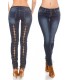 Blue nod-line jeans with back-highlighting cut- out. There are no pockets on the jeans. Discontinued product - will not be restocked.