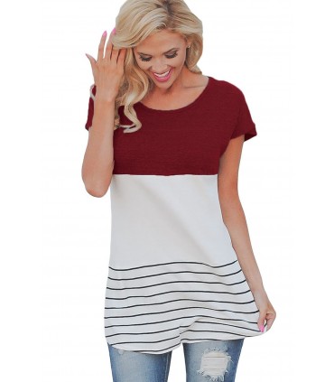 Burgundy white striped short-sleeved shirt with stripes [LAST CHANCE]