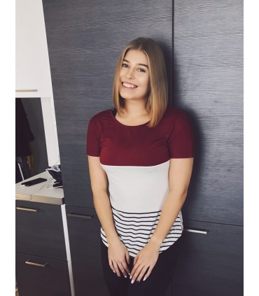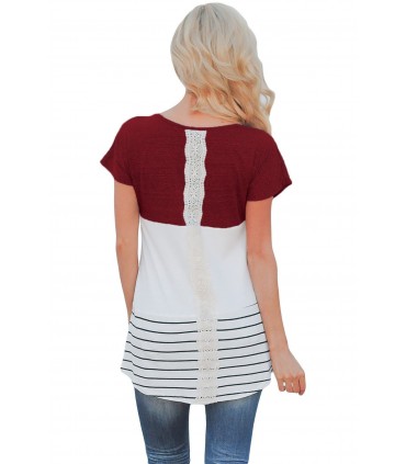 Burgundy-white short-sleeved lace-trimmed shirt with stripes. Only available in this batch – we won't get any more product.