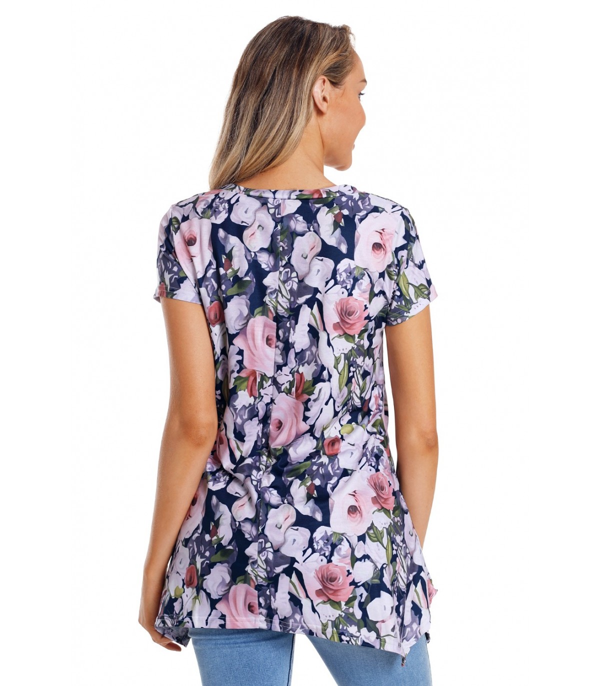 Flower short-sleeved asymmetric t-shirt [LAST CHANCE]