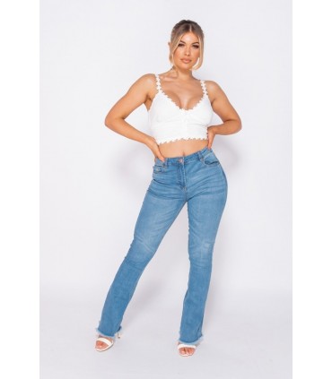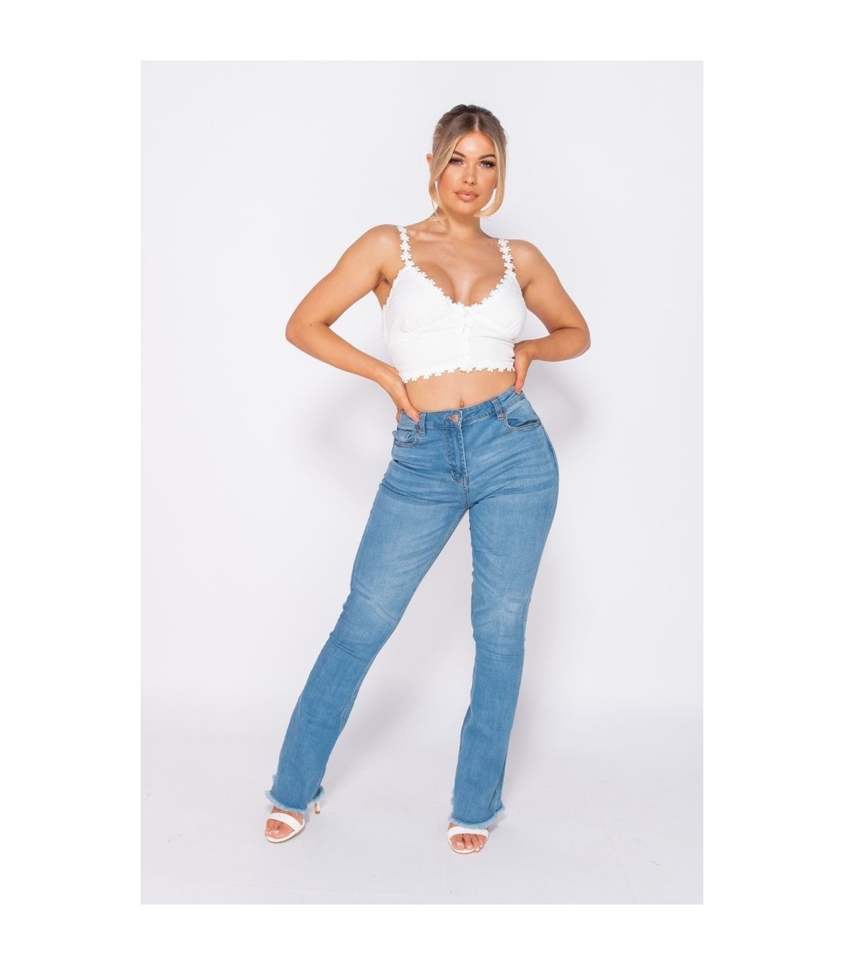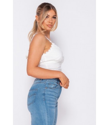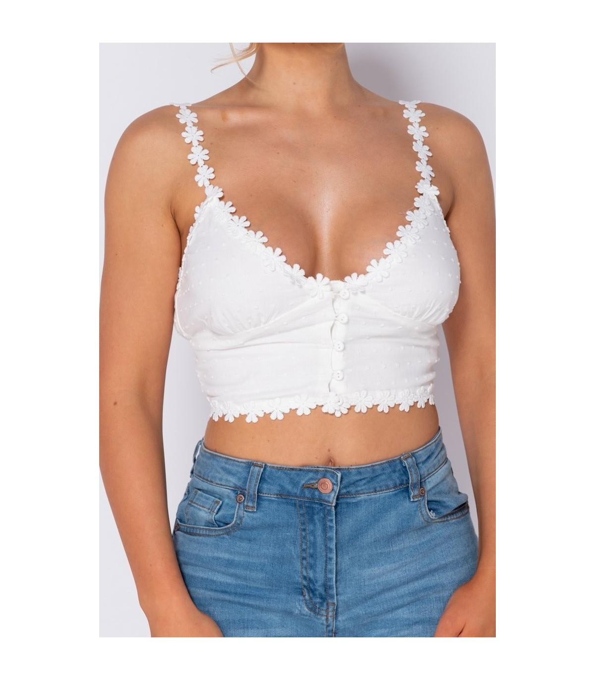 Plus de details Last items in stockParisian white floral-emblamented short top with buttons [LAST CHANCE]