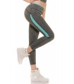 Gray workout tights with turacose stripes. Best suited for narrow-waisted women who are about 165 centimeters tall.