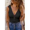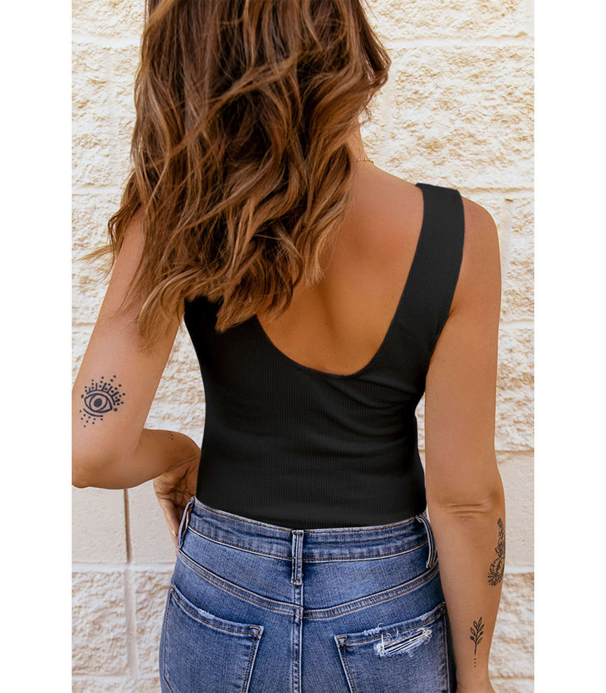 Black two-shoulder lace trimmed v-ribbibody. A body with lace trim on a v-neckline is a feminine garment for various outfits. Ribbibody with lace is suitable for everyday life, dates and evening gatherings. The bodysuit is suitable for wearing with both trousers and skirts. Body brings out the impressive waist parts of the high-waisted bottoms. Under a two-shoulder bodysuit, you can easily wear a normal bra. With a push-up bra, you can bring out your breasts more if you wish. Black bodysuit is easy to combine with clothes of different colors.