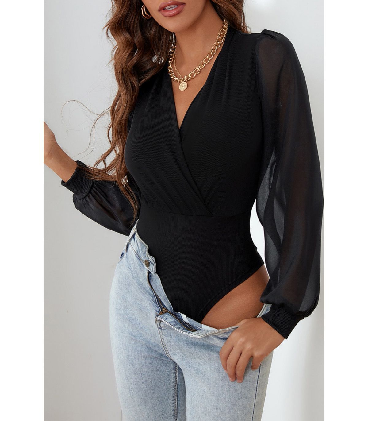 Black mesh sleeve v-body