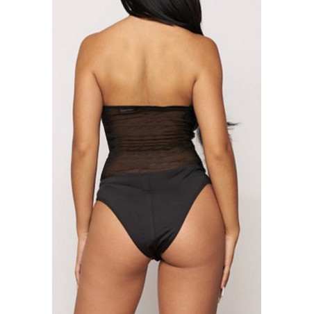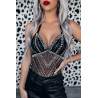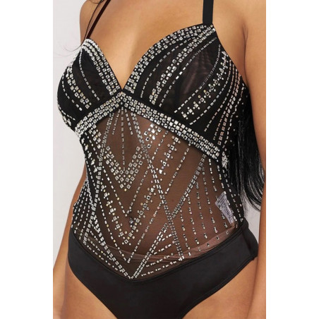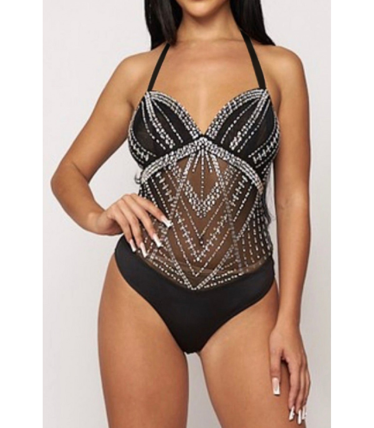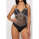 Black rhinestone halterneck mesh-body