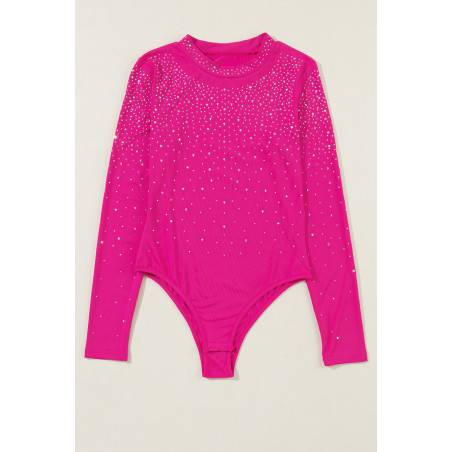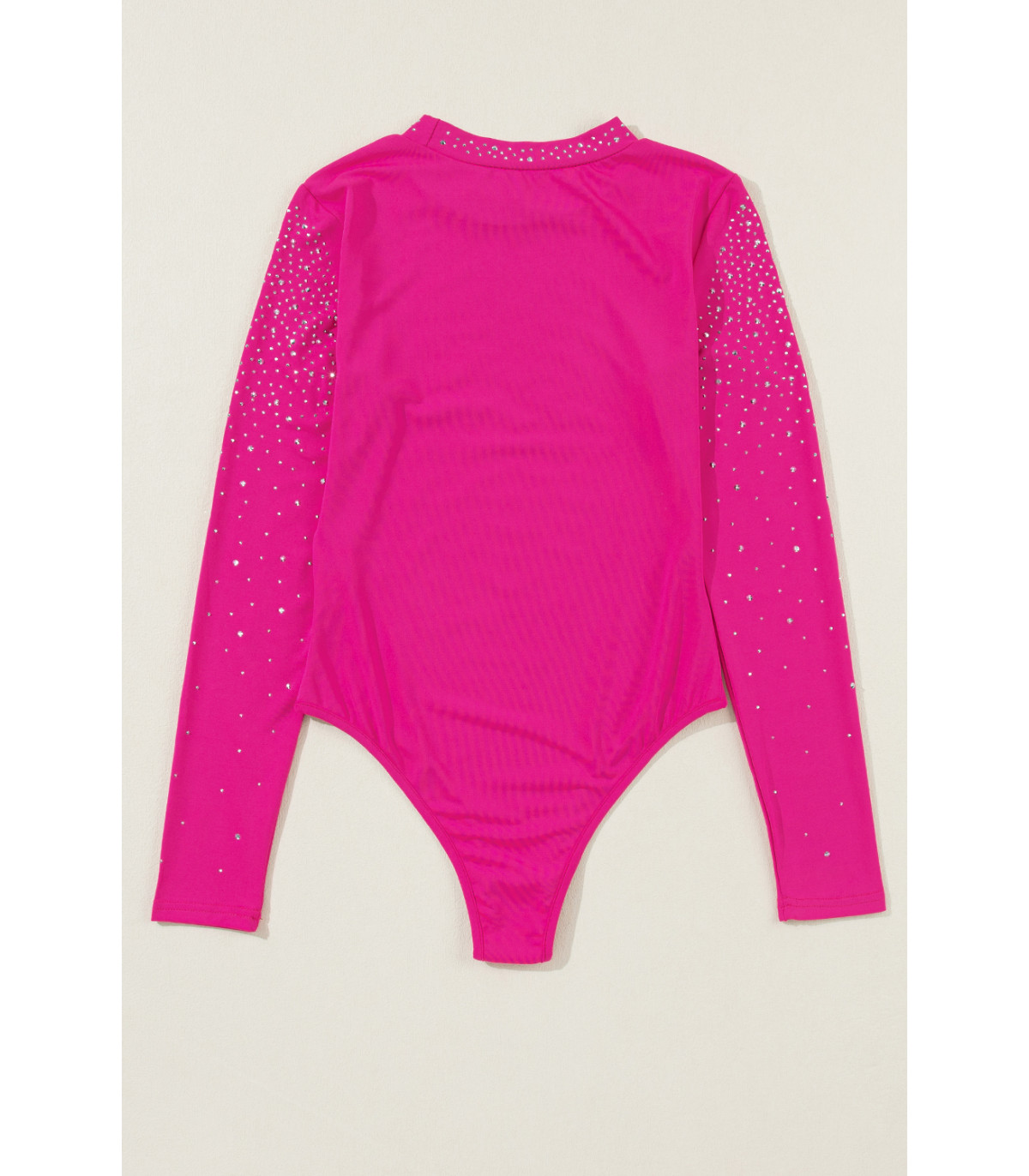 Pink rhinestone-trimmed long-sleeved bodysuit