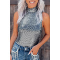 Silvery sleeveless high-collar sequin glitter body. The lower part of the body is black. Best suited for approx. 165 centimetres.