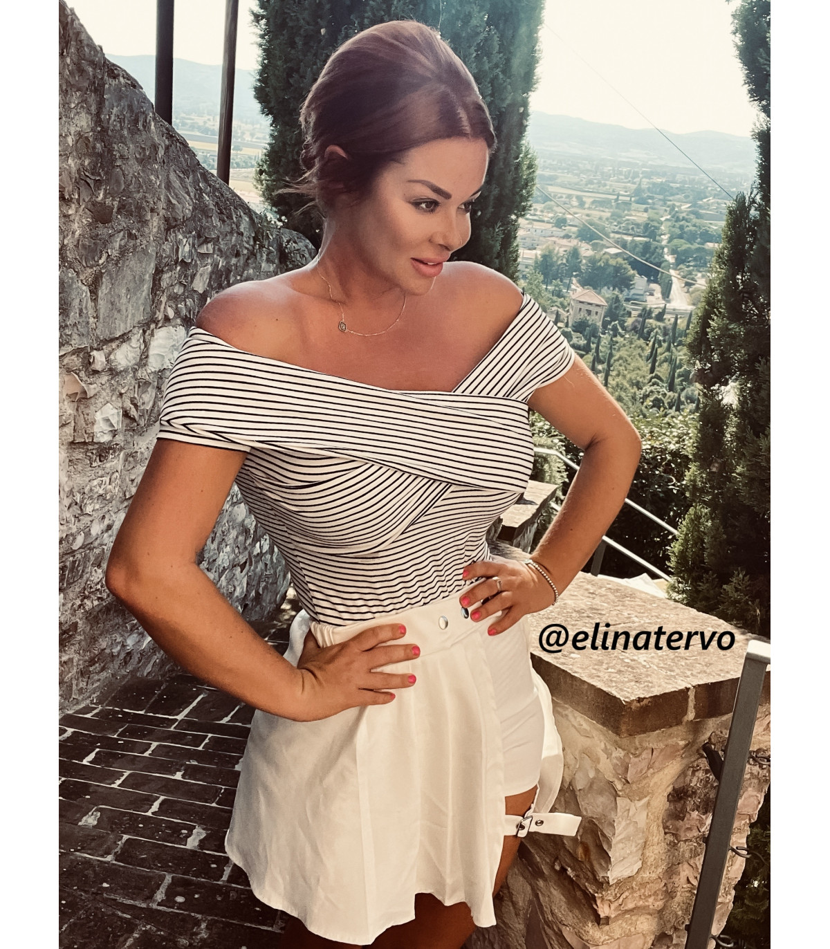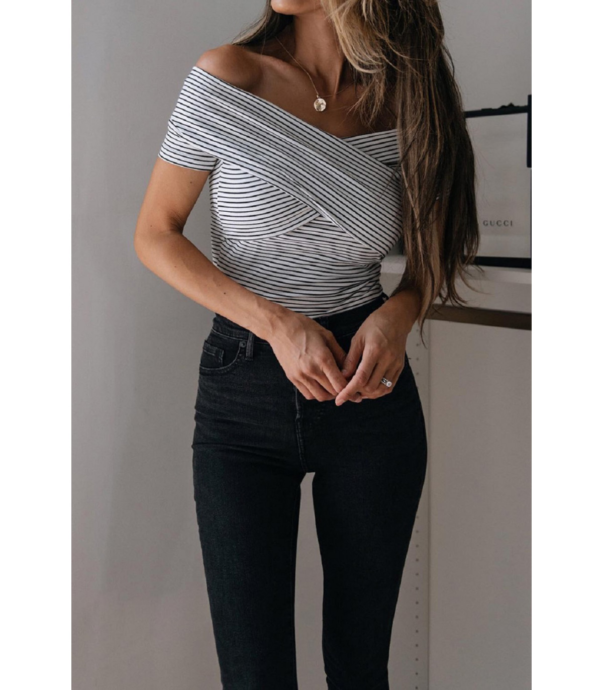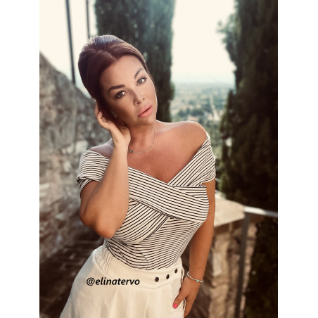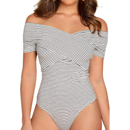 White and black striped off-shoulder body