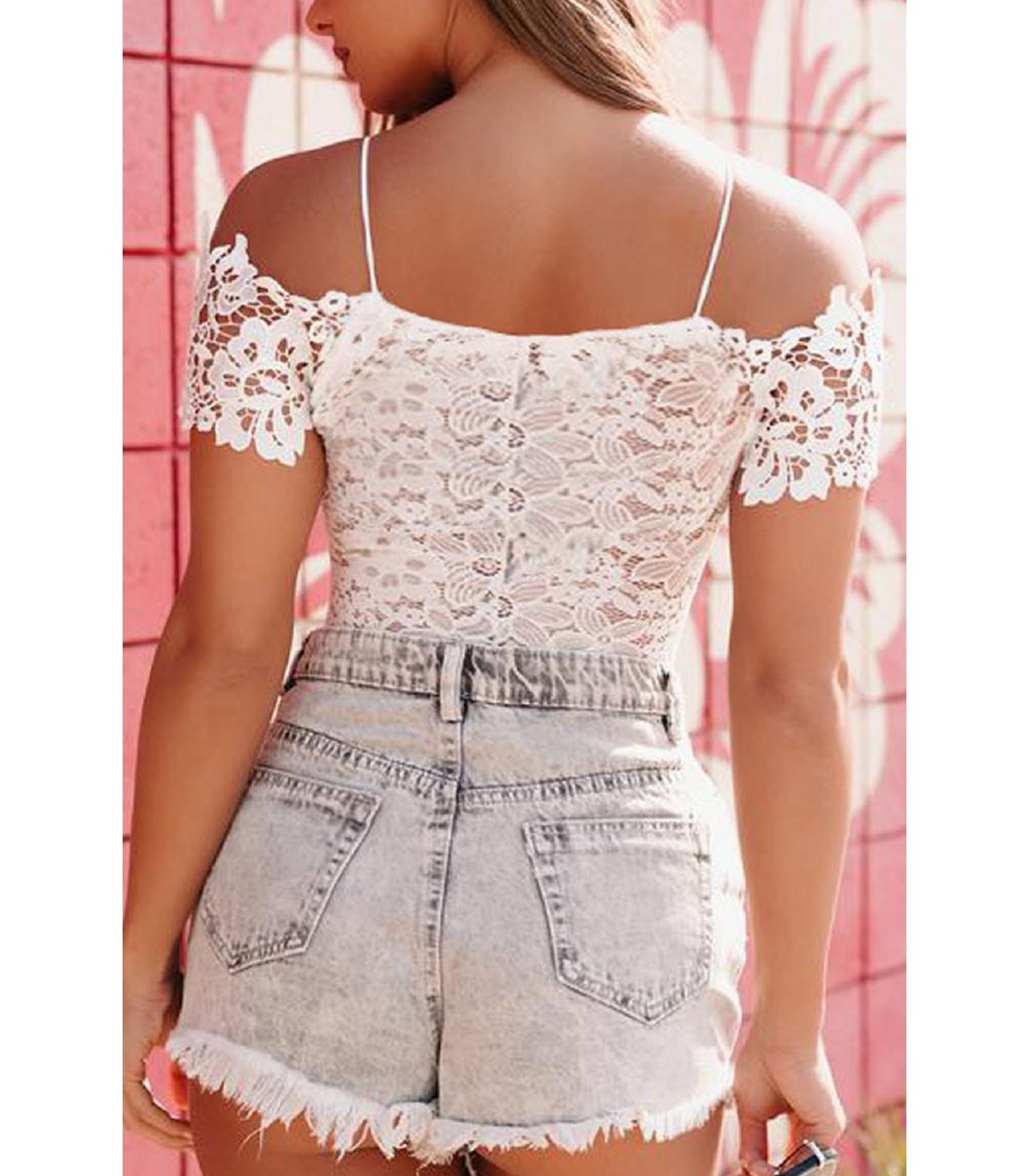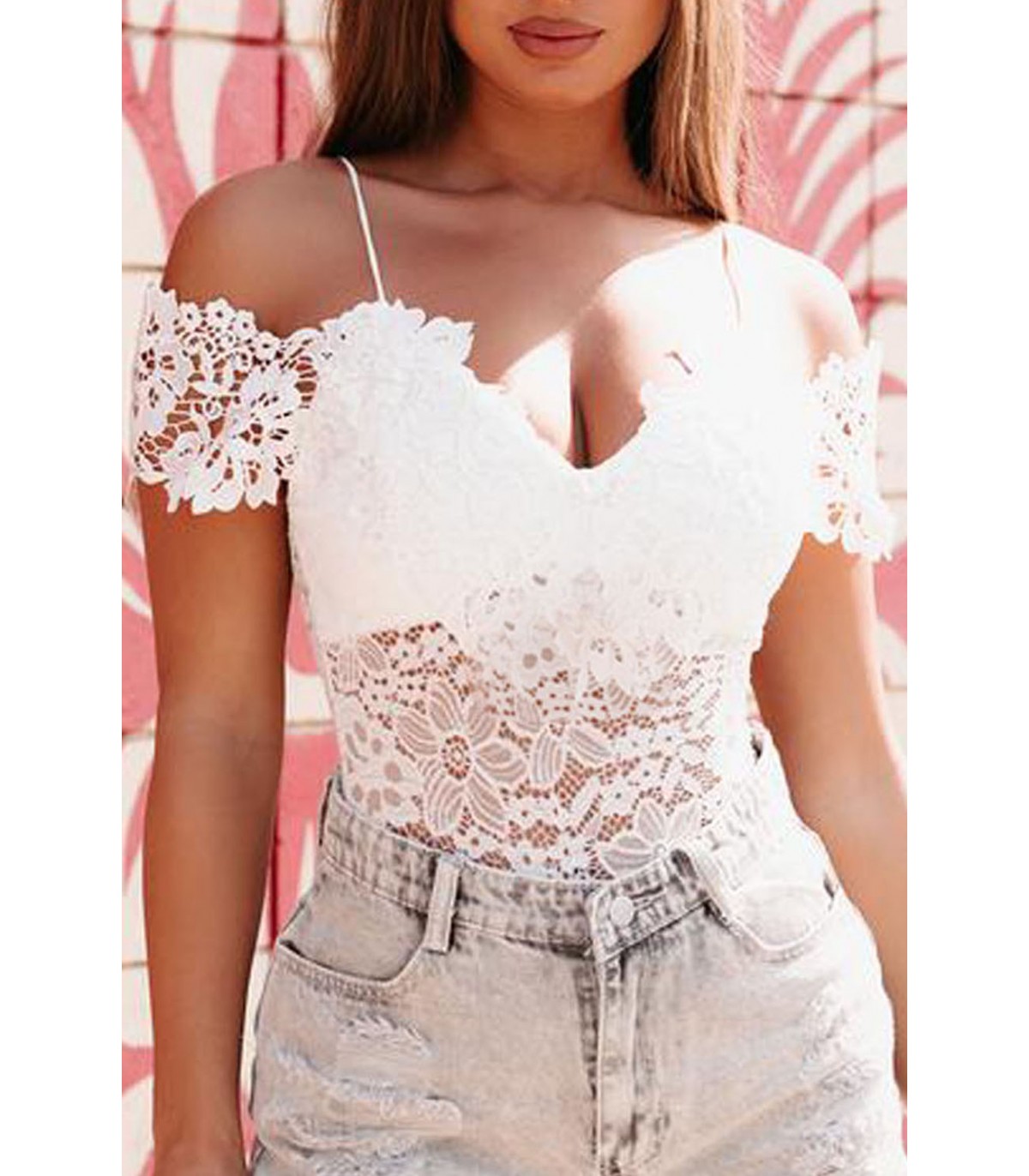 White off-shoulder lacebody with straps