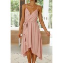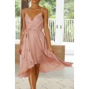 Pink wrap-look high low v dress