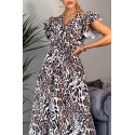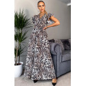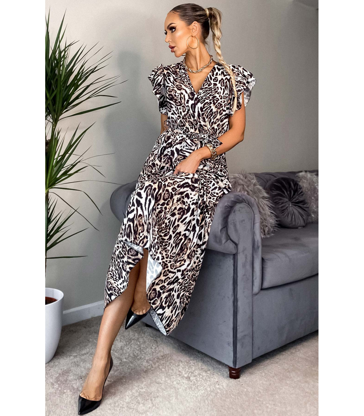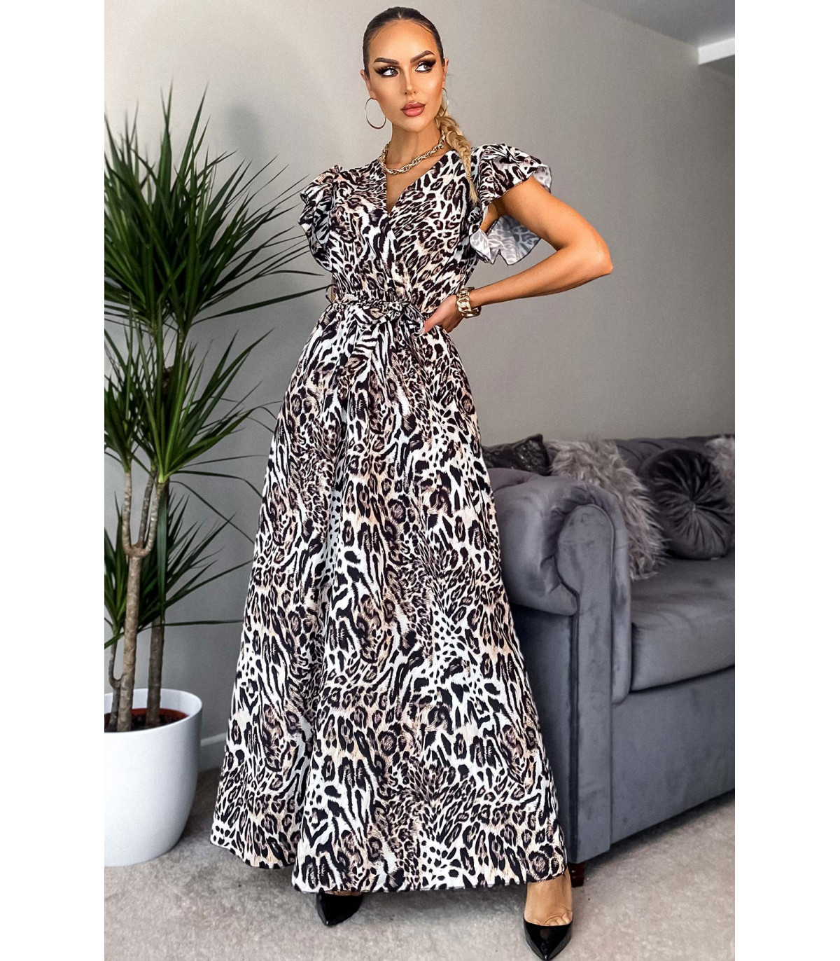 CW Cordelia brown leo-patterned v-maxi dress with ruffles