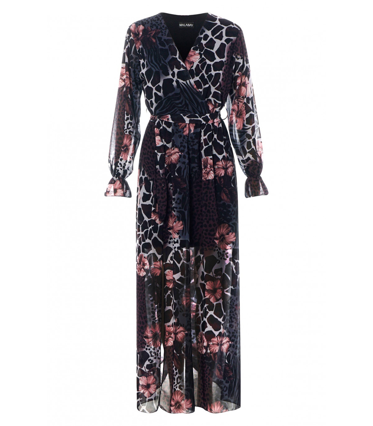 CW Thandie rose and leo patterned v-maxi dress