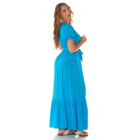 Koucla turquoise short-sleeved with v-maxi dress belt