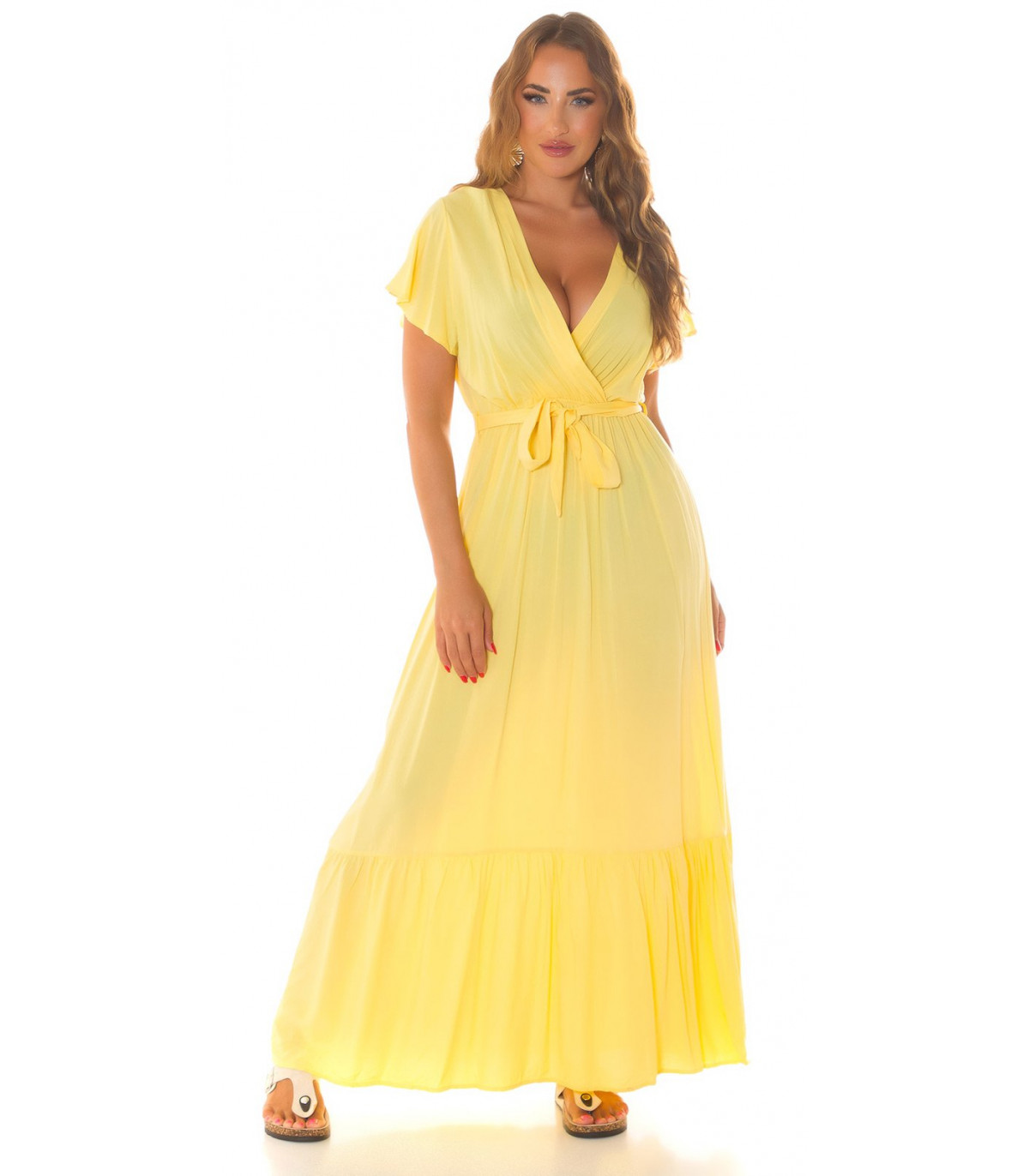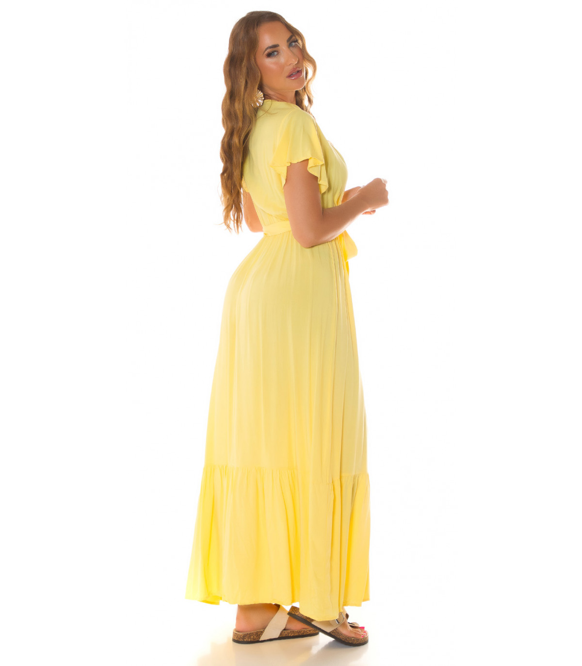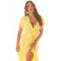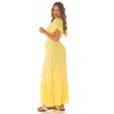 Koucla yellow short sleeve with v-maxi dress belt