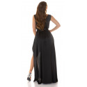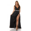 Koucla black v-satin maxi dress with slit and rhinestone belt