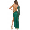 Koucla green long glitter dress with chain strap and slit