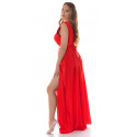 Koucla red v-satin maxi dress with slit and rhinestone belt