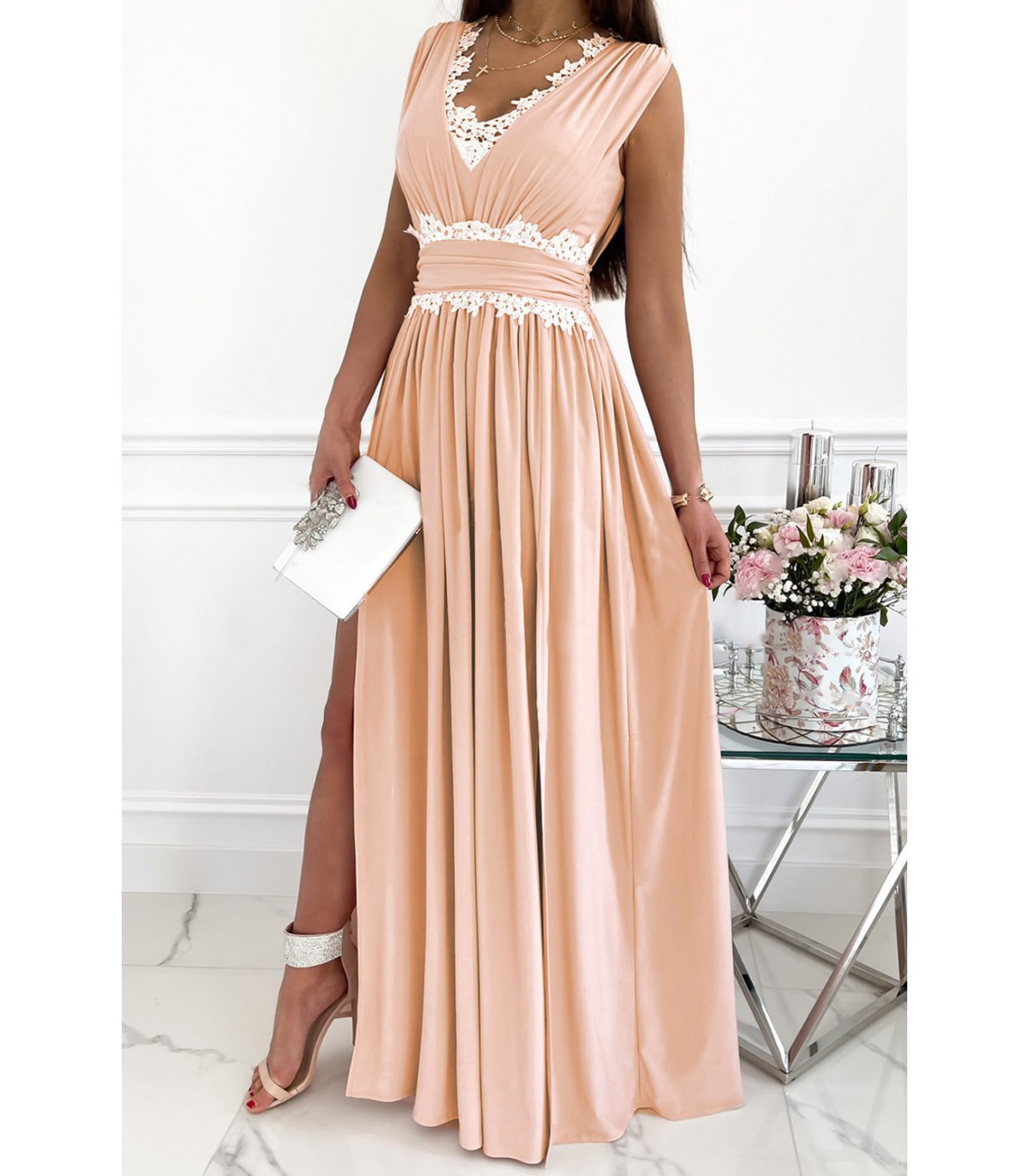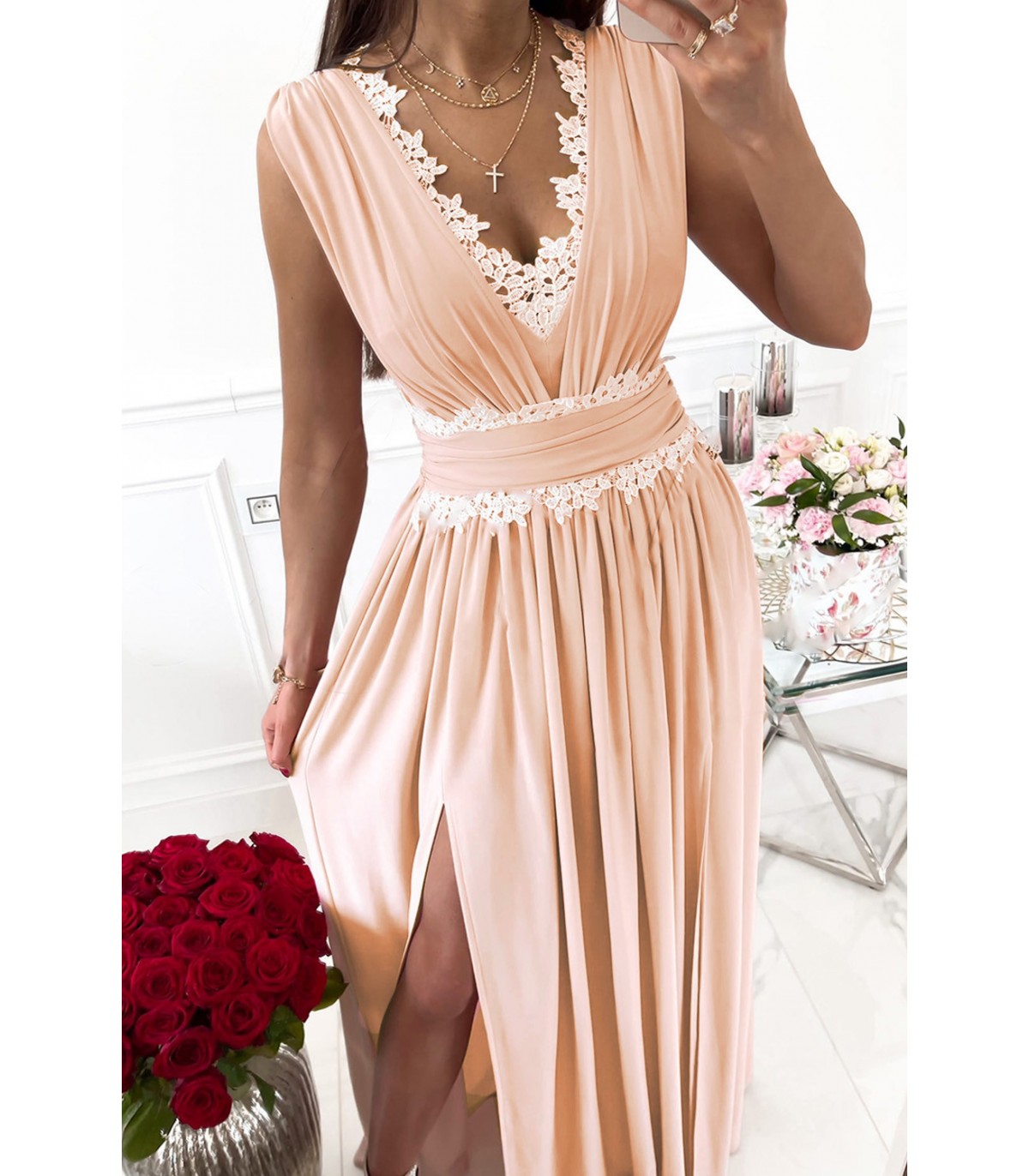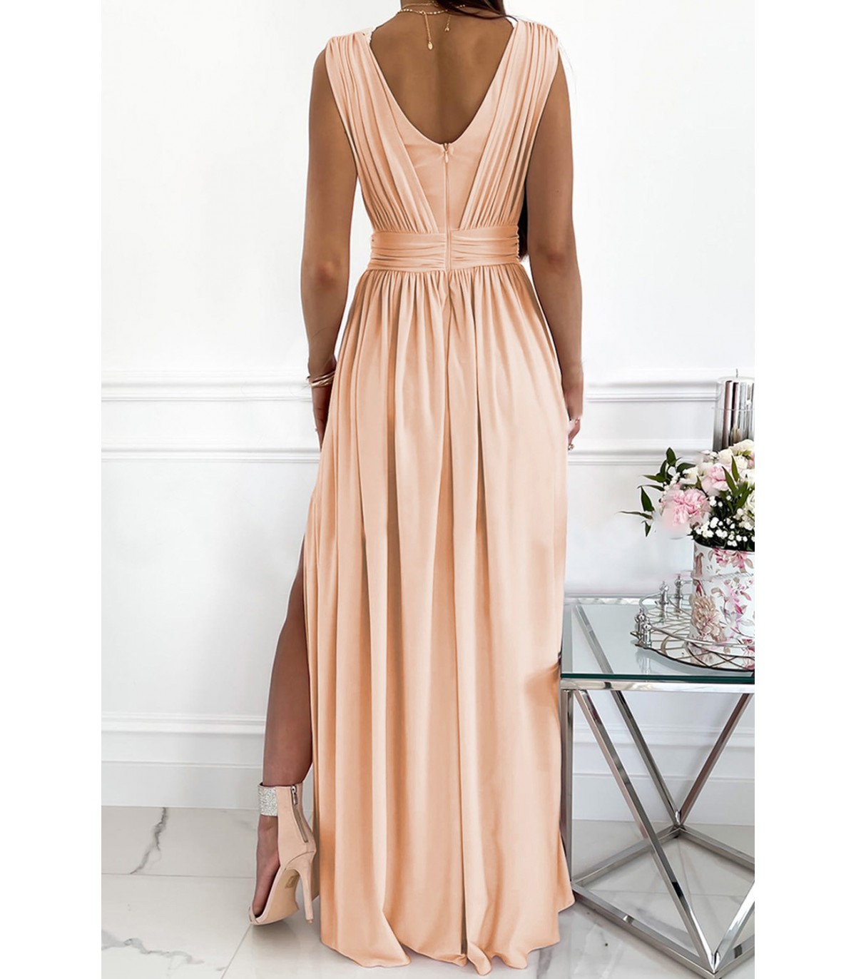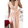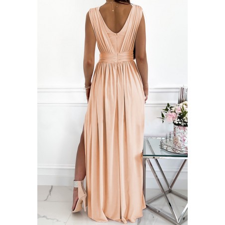 Ihana nudenvärinen mekko, sopii niin kesämekoksi kuin juhlaan. Koko sopiva. Ei liian pitkä.