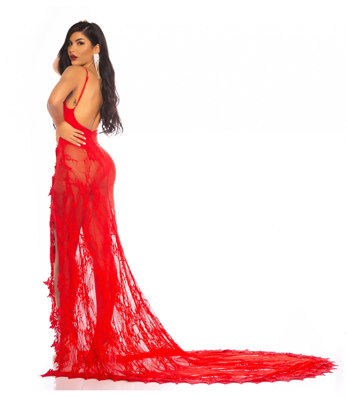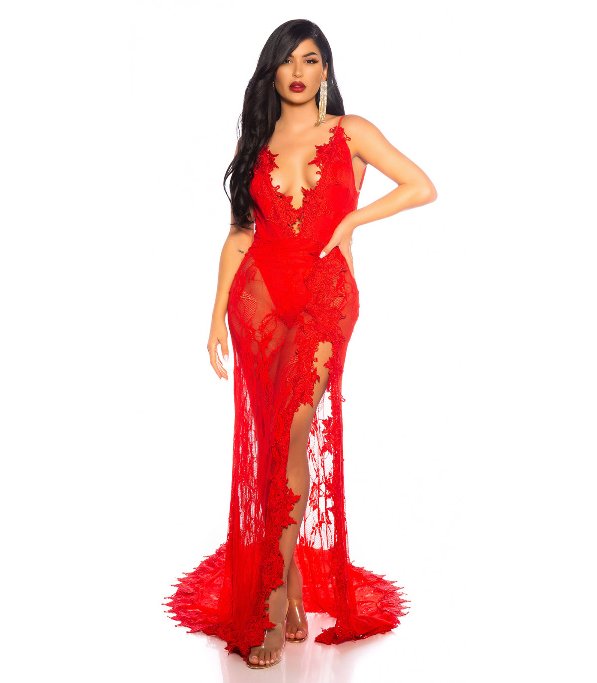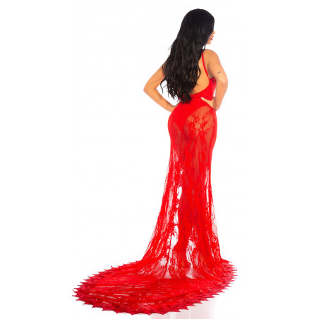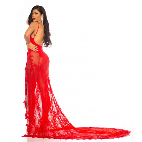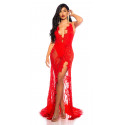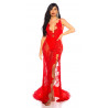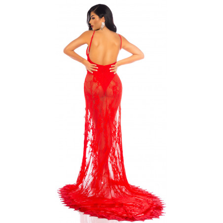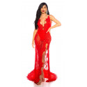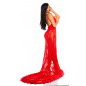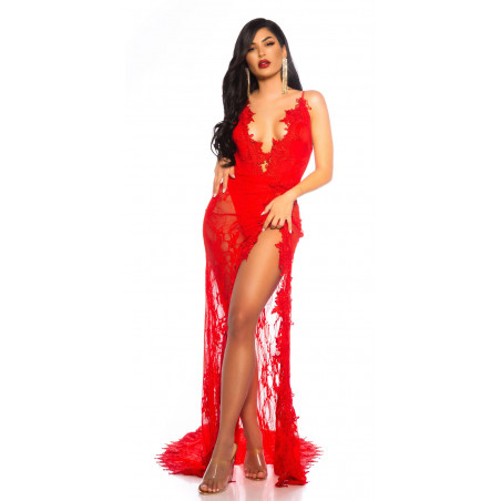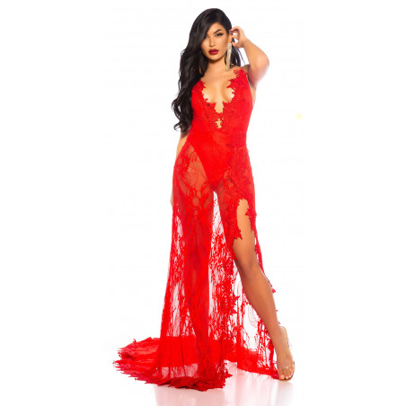 Red long lacy v-body dress