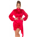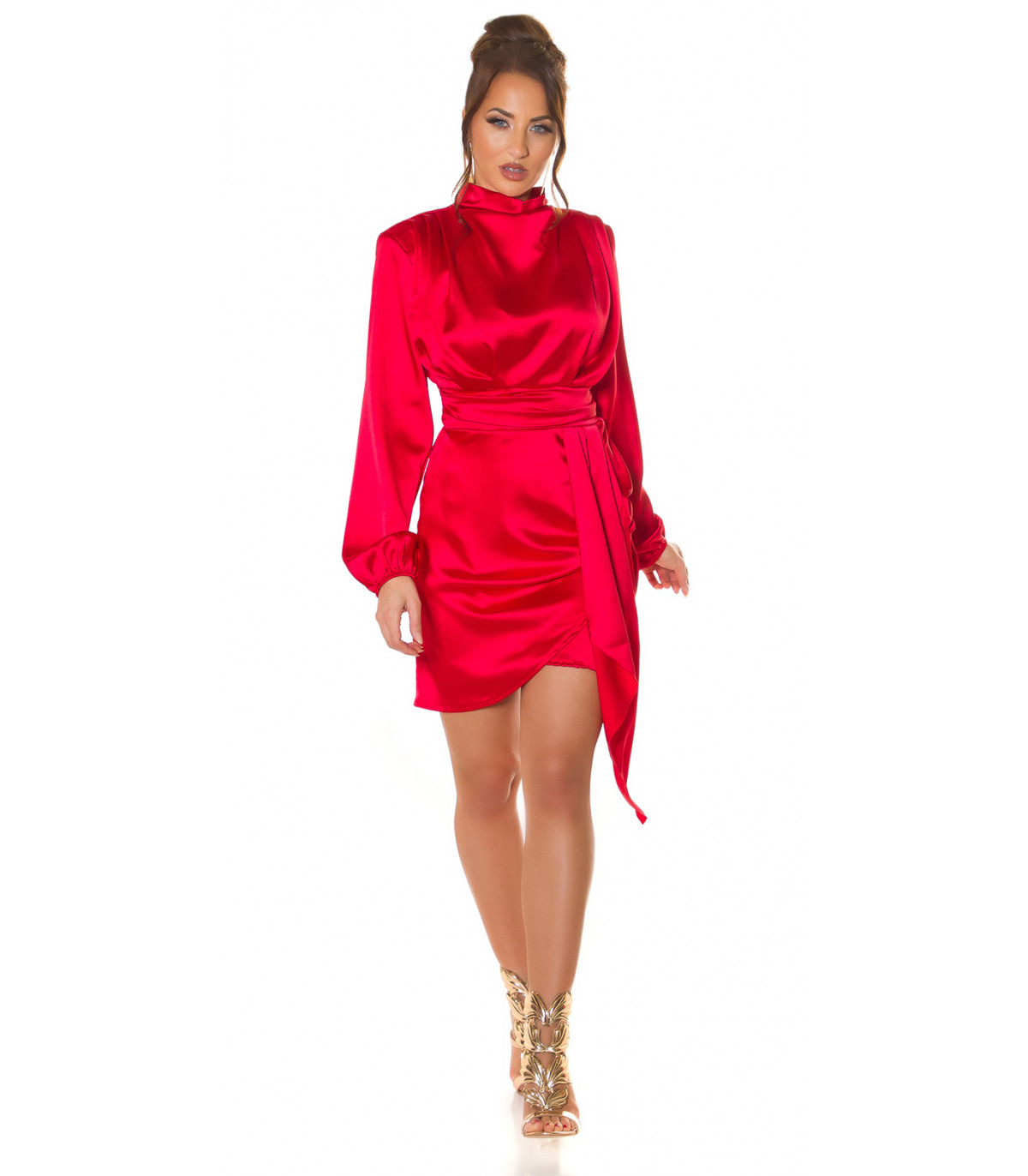Red long-sleeved satin dress with flaming. A stylish red party dress is perfect for various parties and events. Fabulous long-sleeved satin dress is an elegant choice for many different occasions. The red dress is beautiful and is perfect for Christmas parties and holidays. The dress is also great for cocktail parties and fancy dinners, for example. In a red dress, you will gather glances. A satin dress is also a sophisticated date dress.