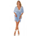 Koucla blue print pattern short-sleeved v-dress with waistband