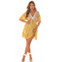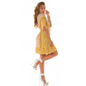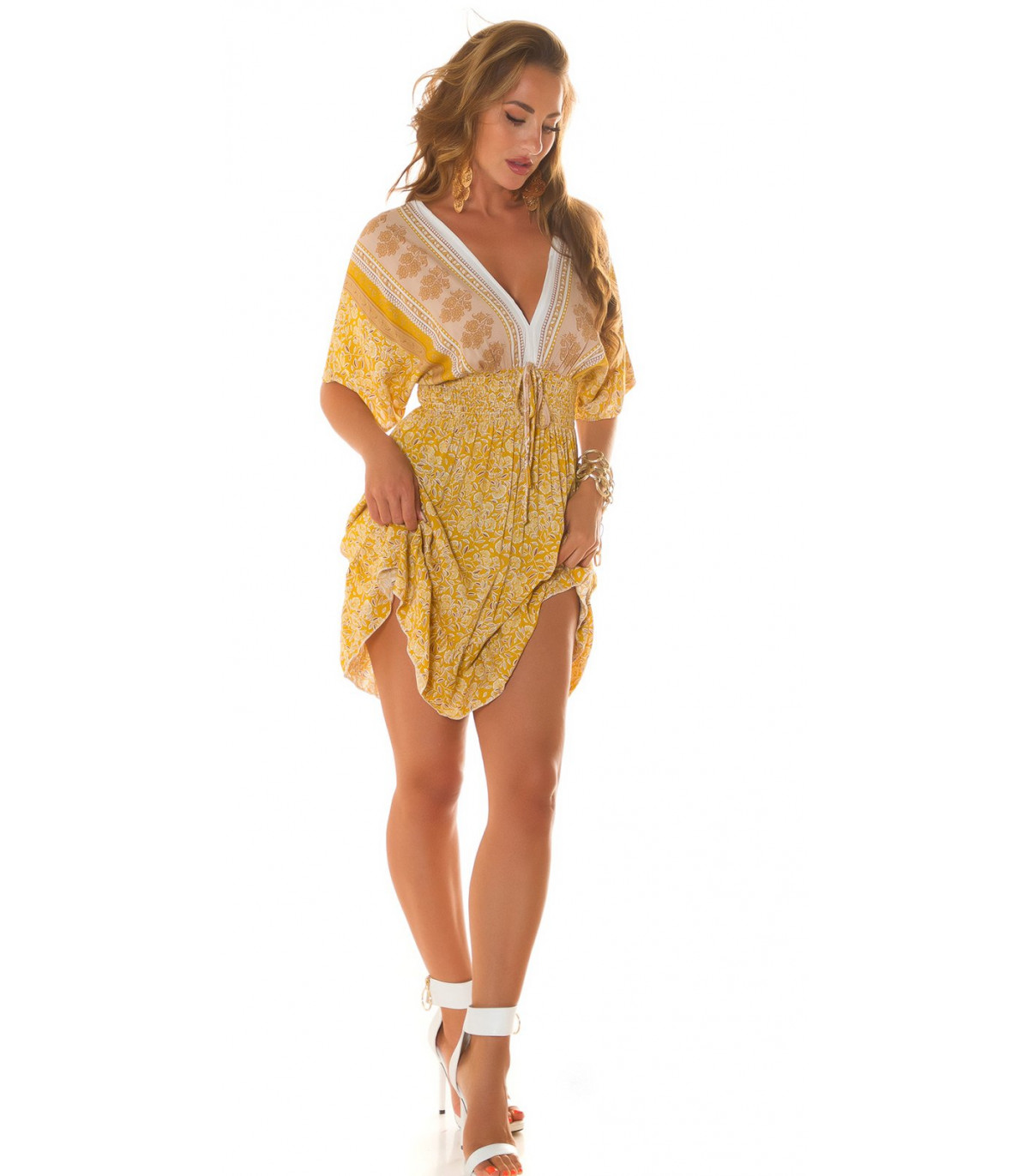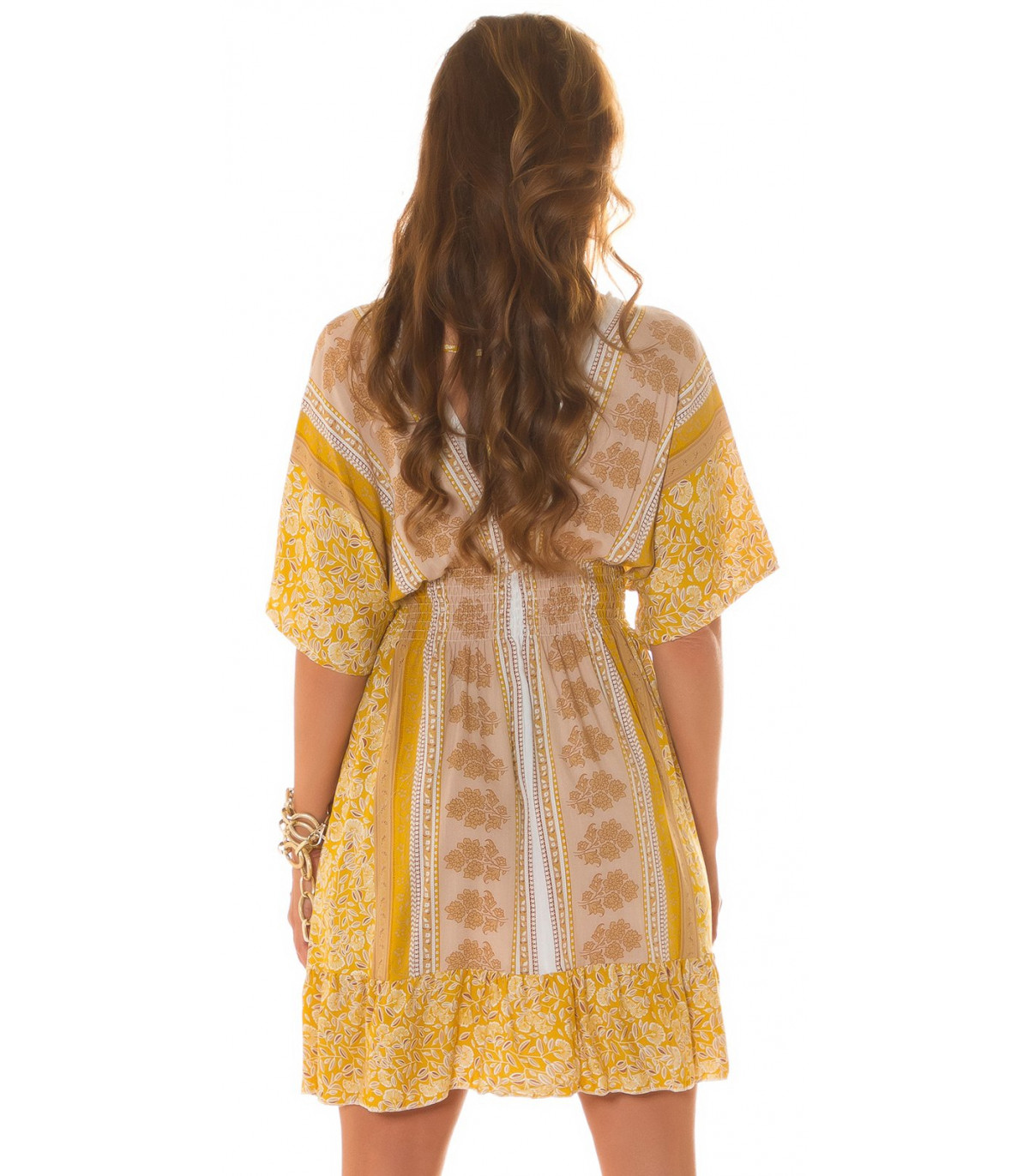 Koucla yellow print pattern short-sleeved v-dress with waistband