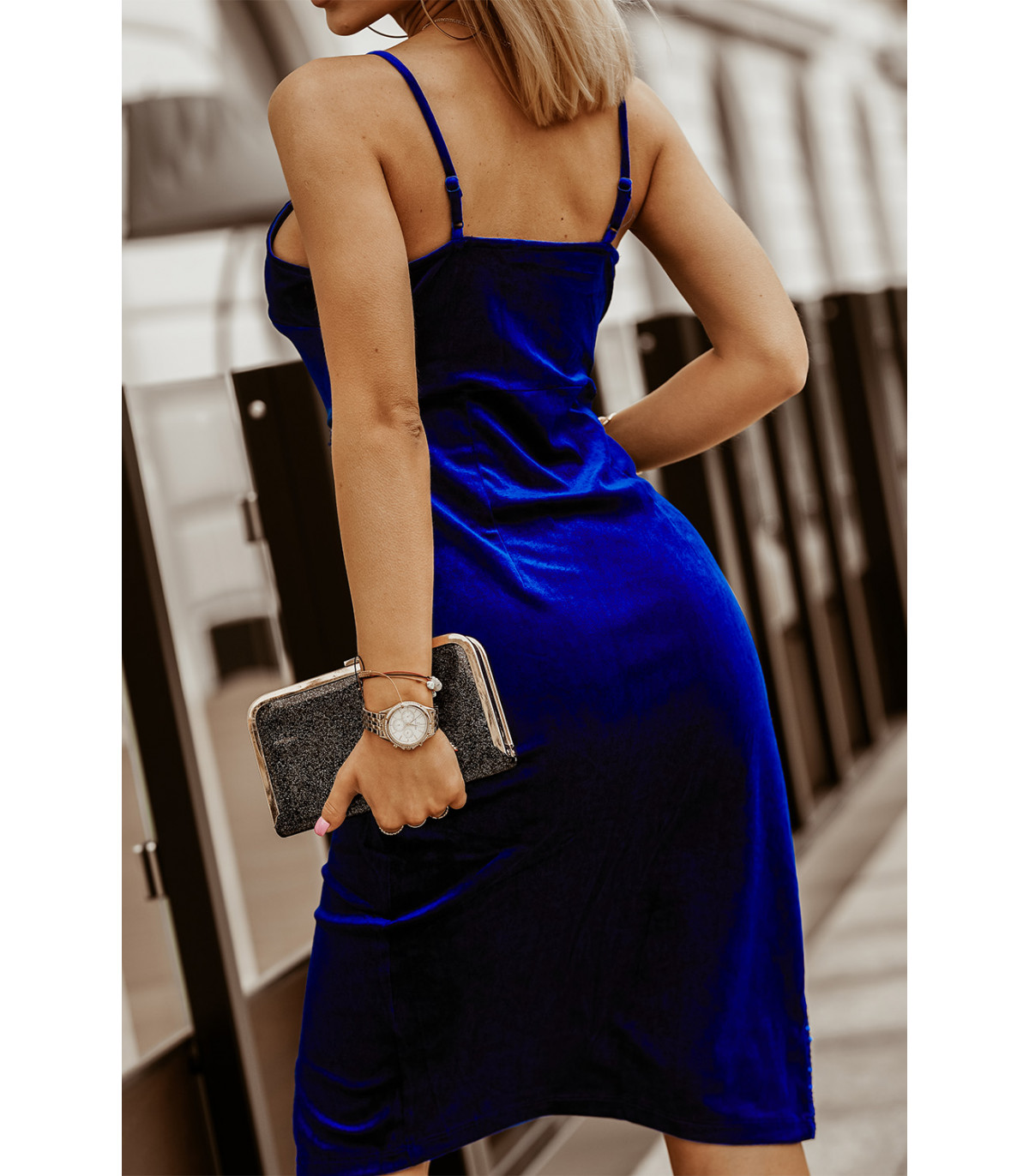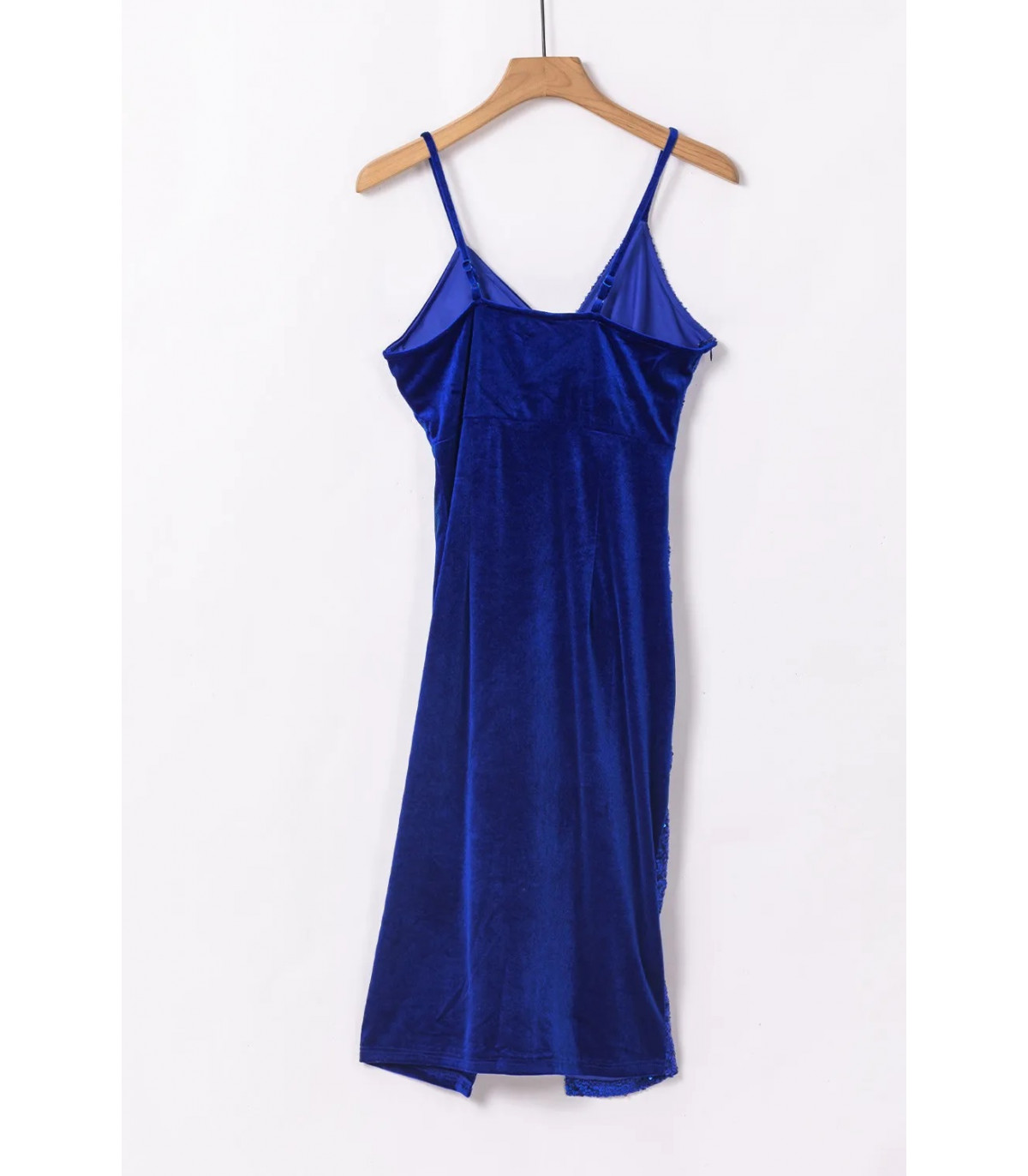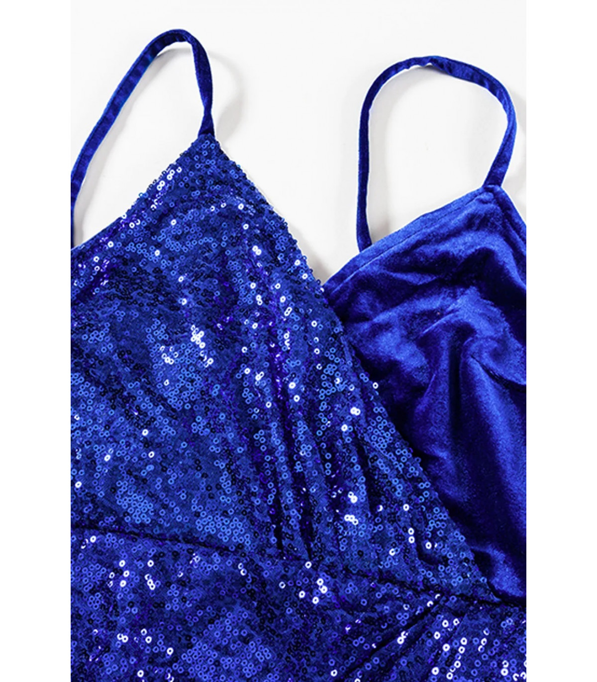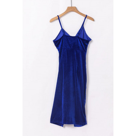 Blue wrap look v-velvet midi dress with sequins