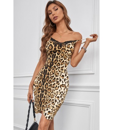 Leopard print lace-orned mini dress