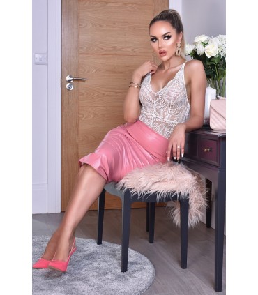CW Kellie Pink Wetlook Midi Skirt [DISCOVERY]
