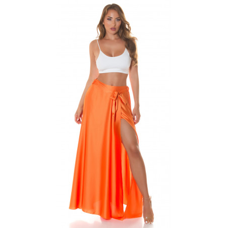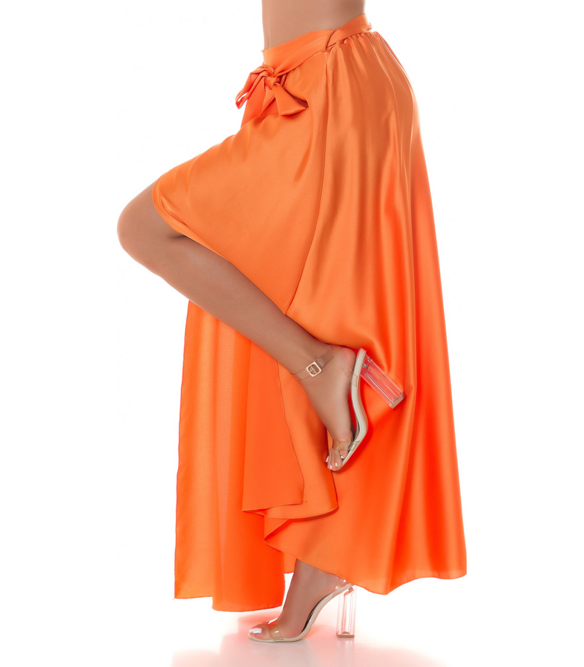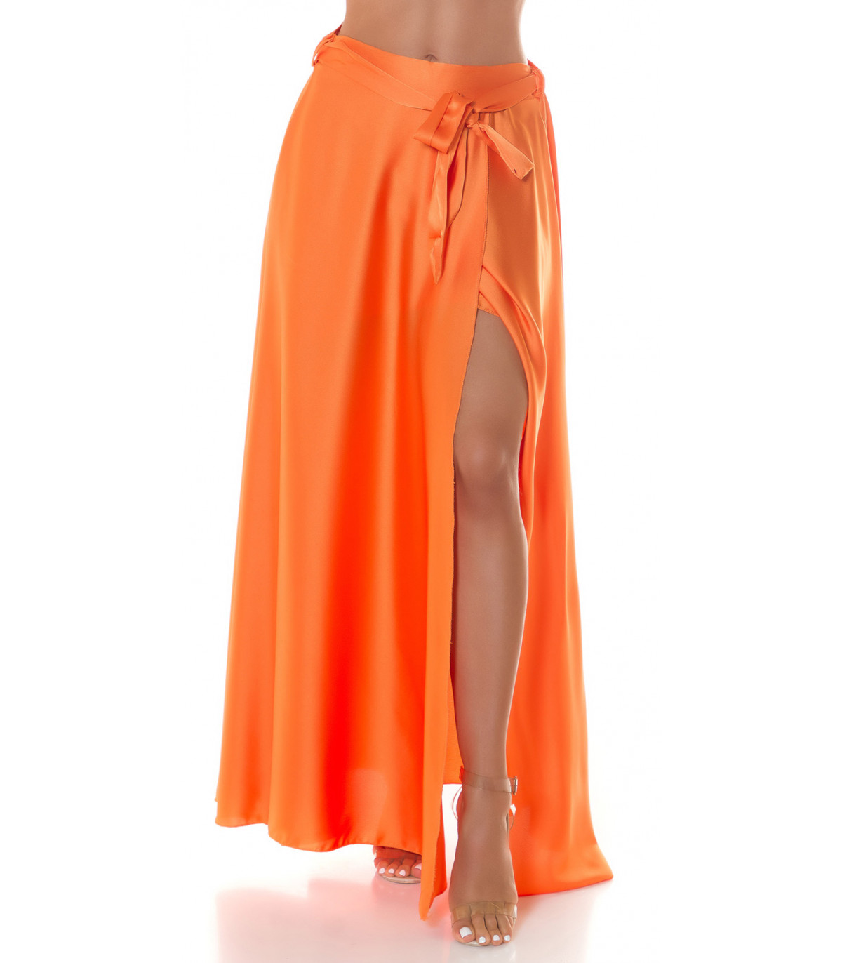 Koucla orange satin look with maxi skirt slit