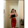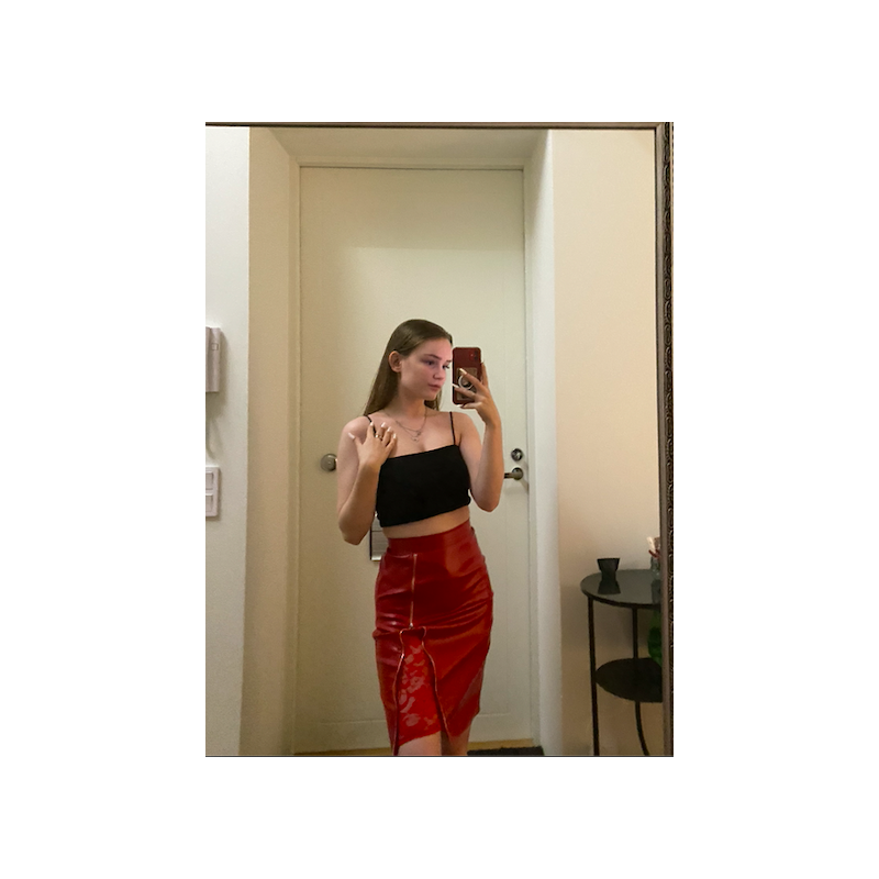 Red High Waisted Push Up Faux Leather Skirt with Lace [DISCOVERY]