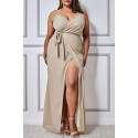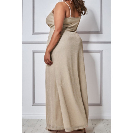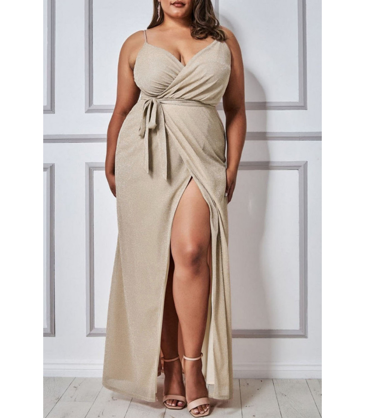 Apricot wrap-look with v-maxi dress slit (plus size) – 2XL