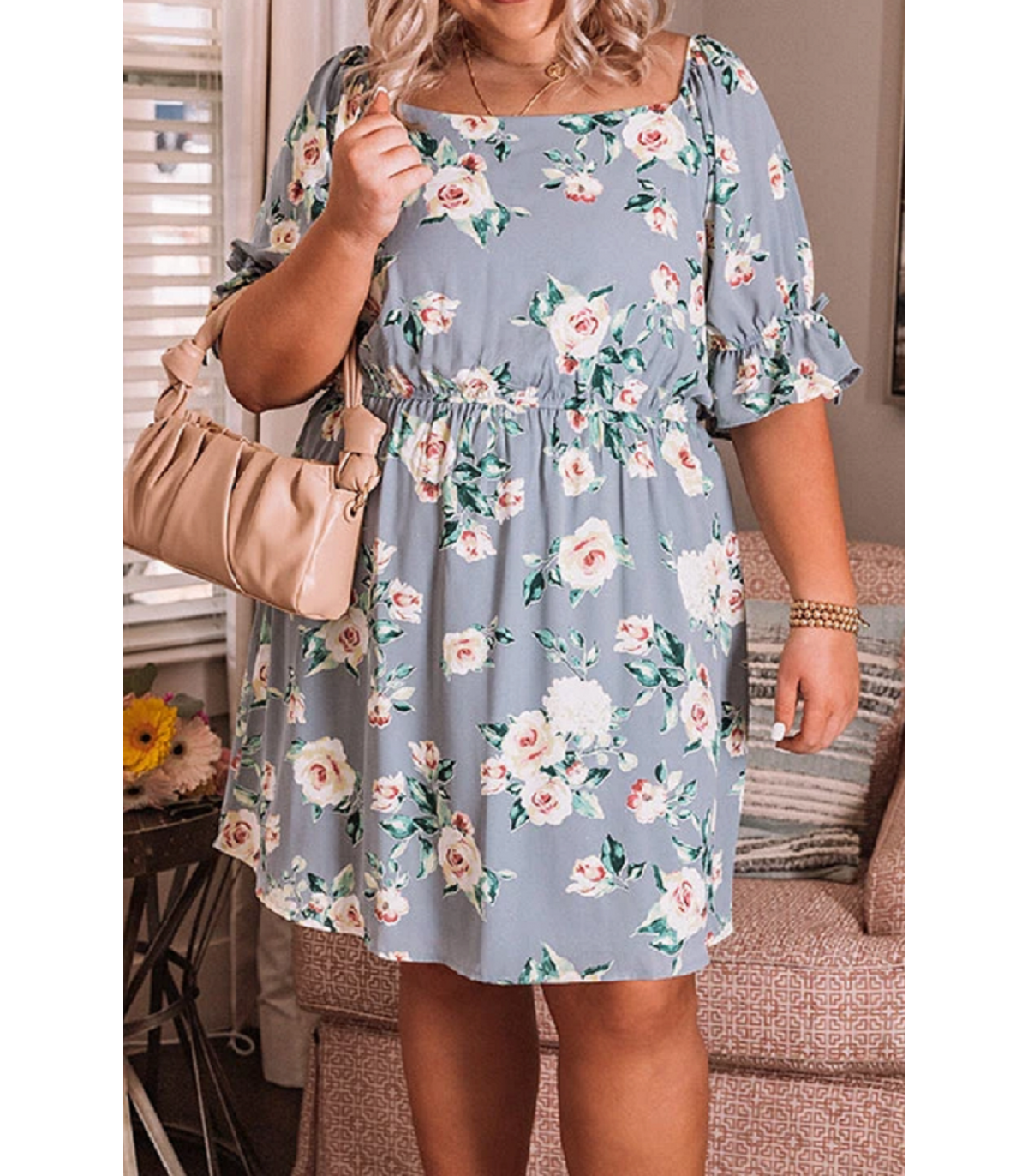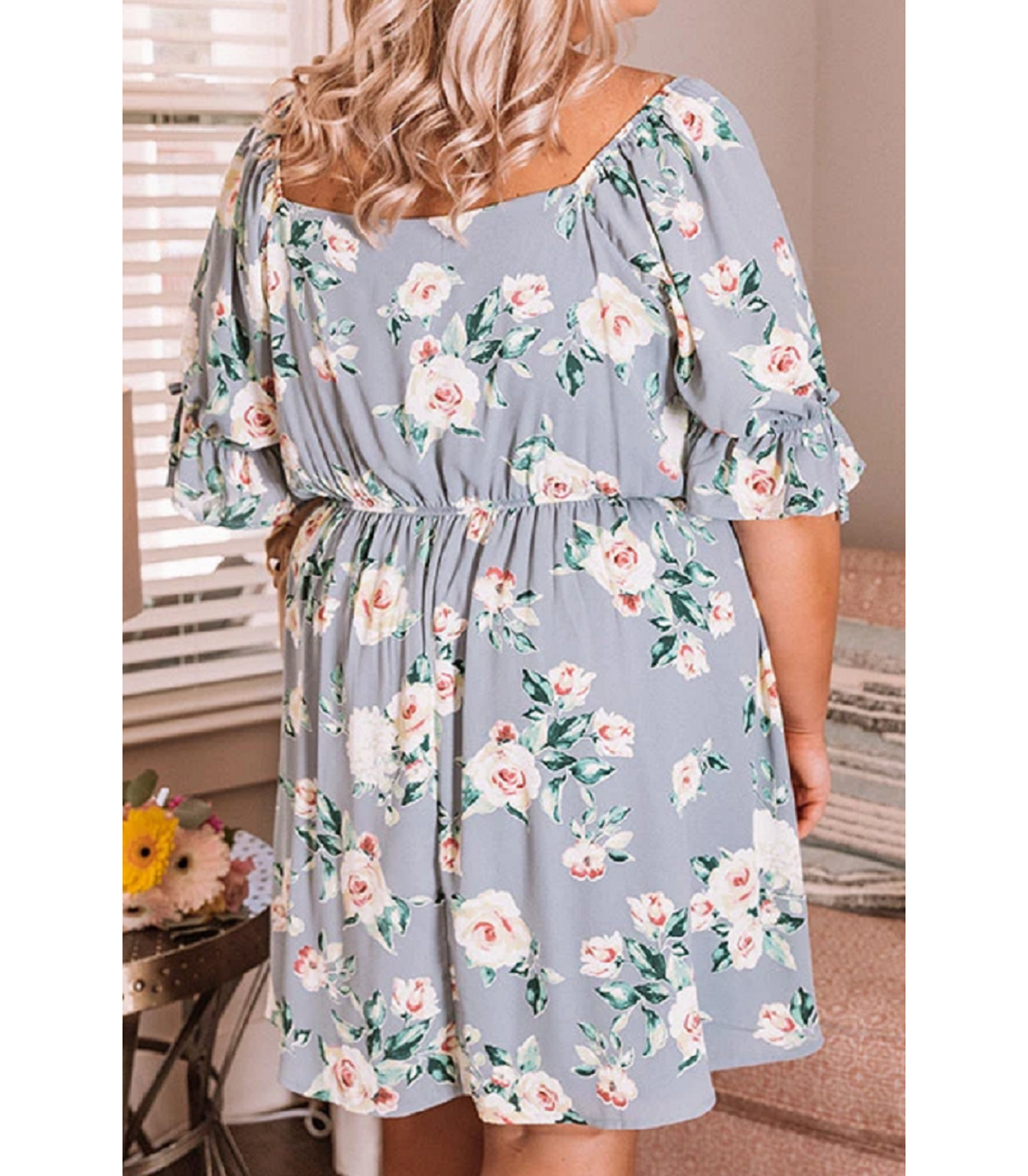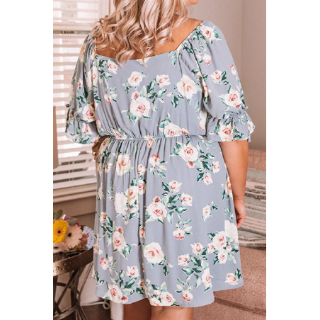 Gray floral pattern dress (plus size) [DISCOVERY]