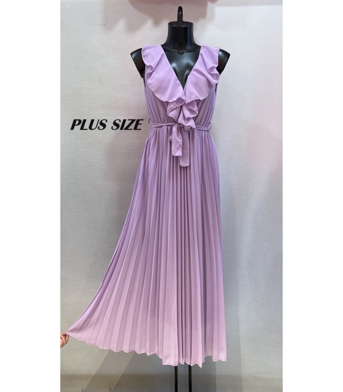 Mily lila pitkä vekkimekko röyhelöllä (plus size)