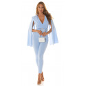 Koucla light blue v-jumpsuit with open sleeves and belt