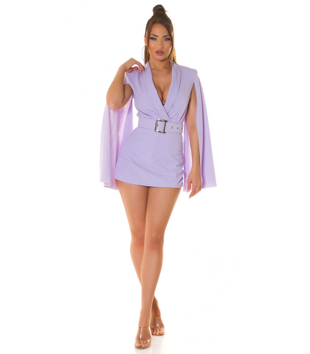 Koucla Lilac shorts skirt V-Playsuit with open sleeves and belt