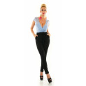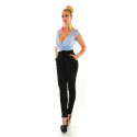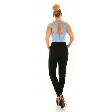 Vaaleansinimusta pitsikoristeinen v-jumpsuit vyöllä