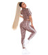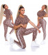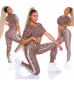 Cappuccino short-sleeved print pattern jogger set with stripes
