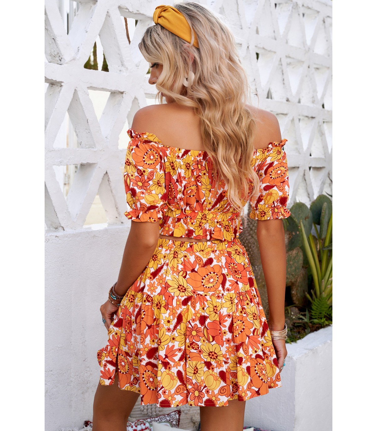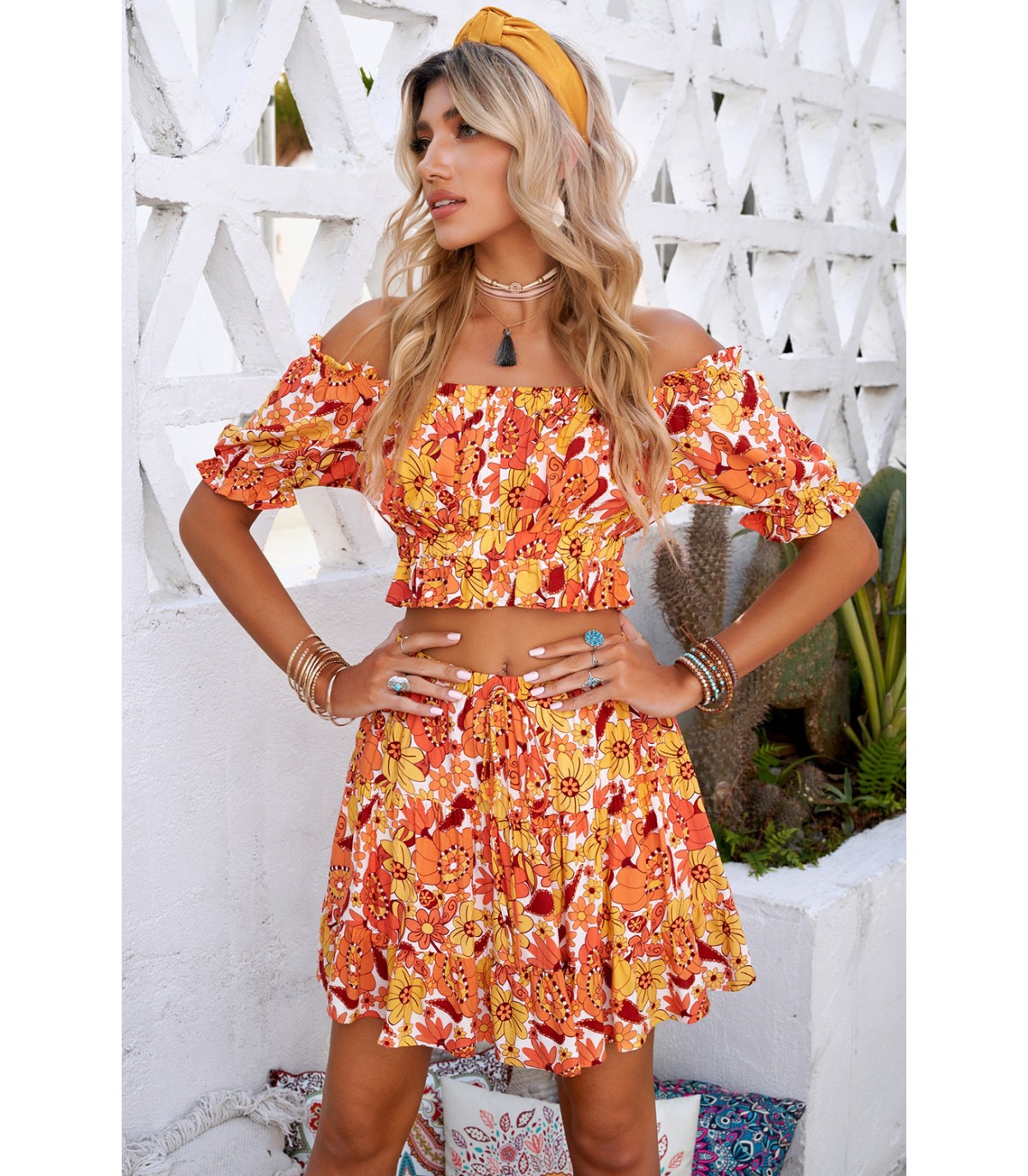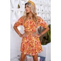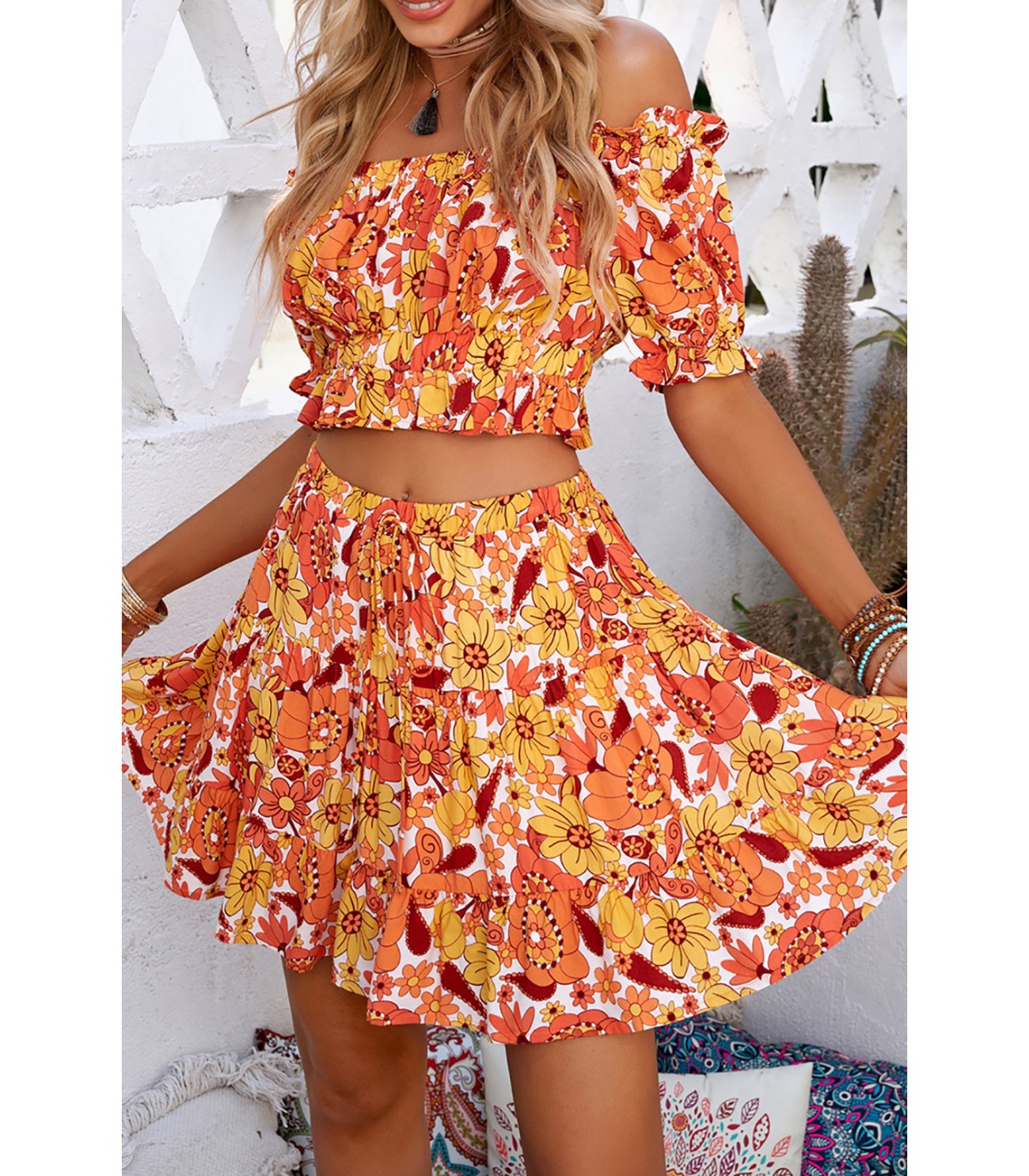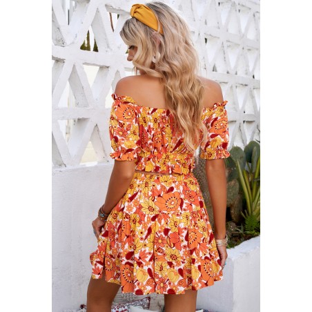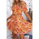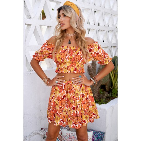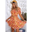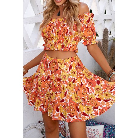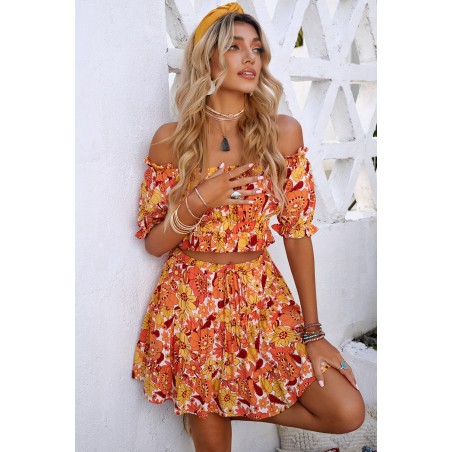 Orange floral pattern skirt set