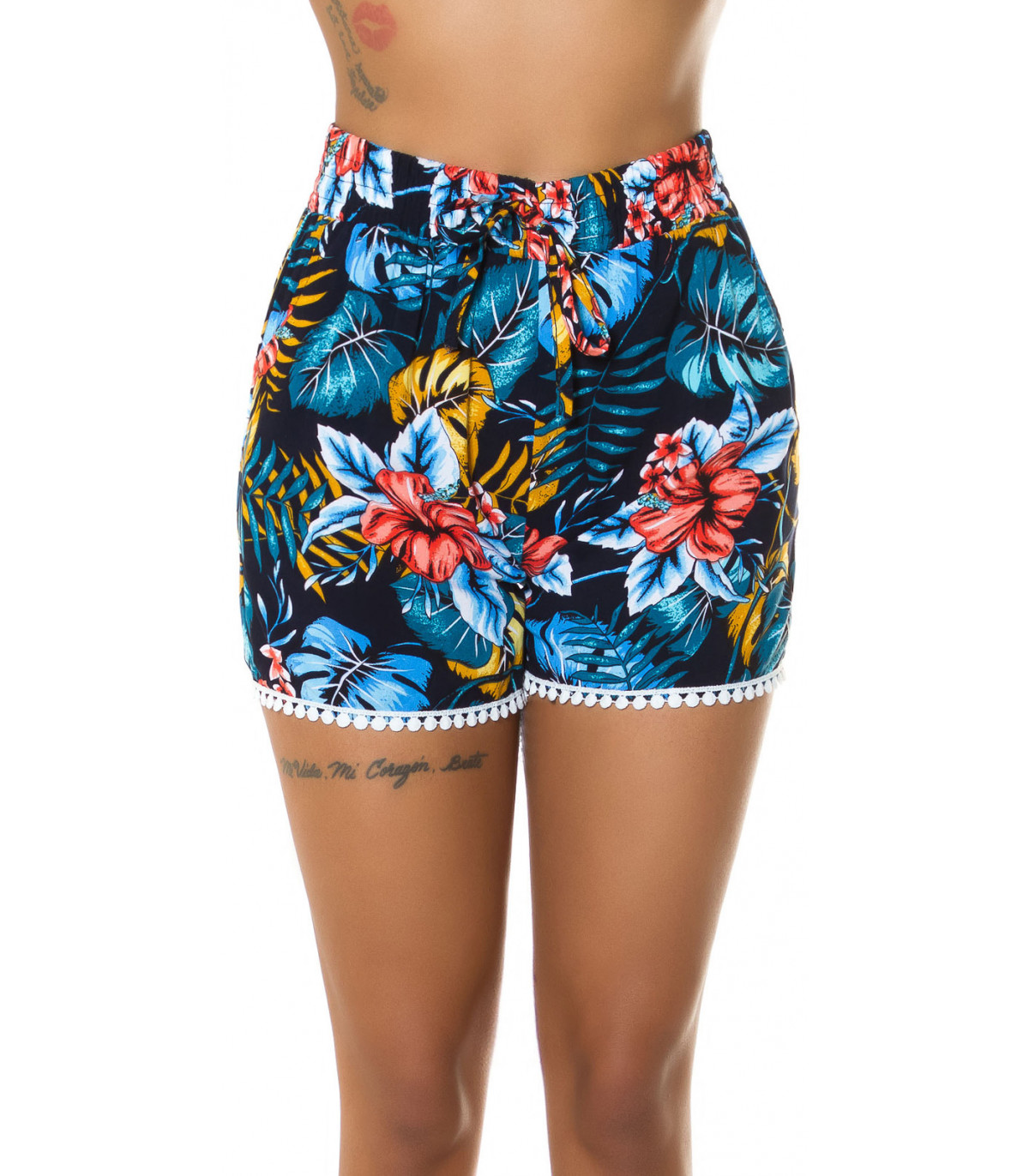Blue leaf-patterned summer shorts